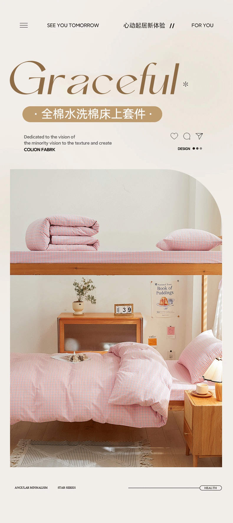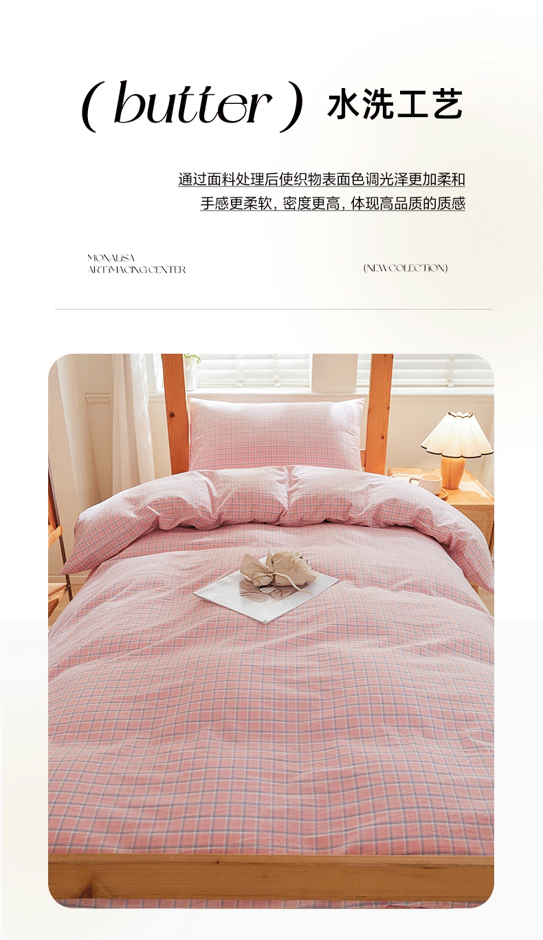 韩约家纺 2024新款全棉水洗棉三四件套 维多利-粉