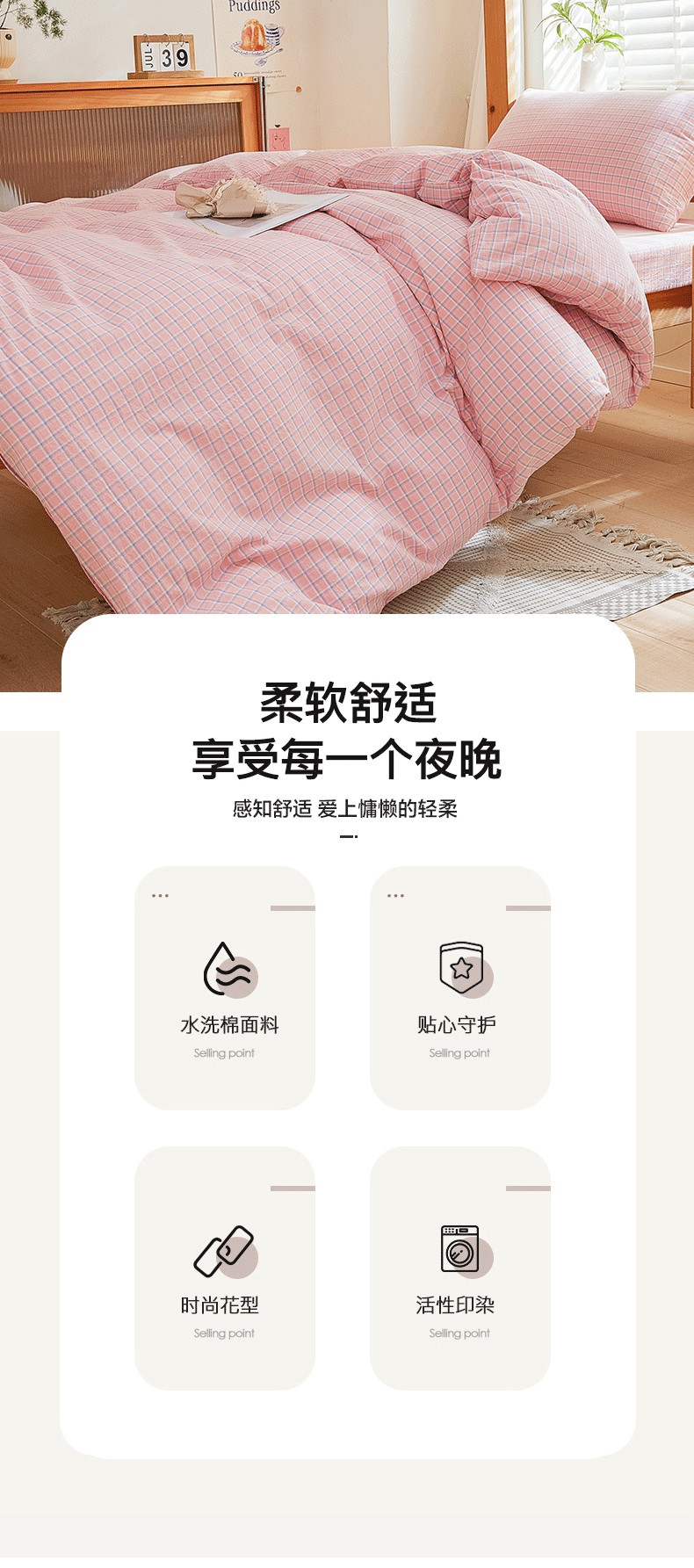 商品名称:韩约家纺 2024新款全棉水洗棉三四件套 维多利-粉