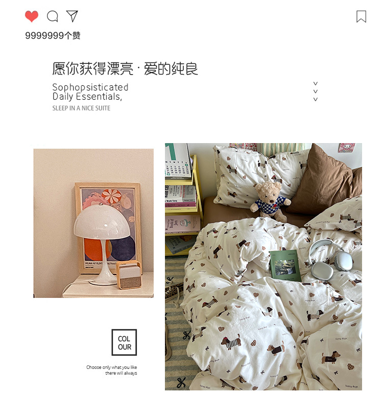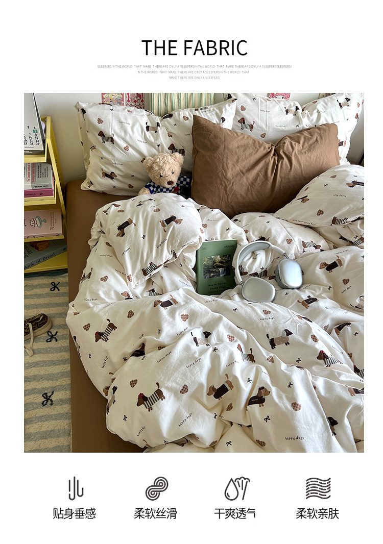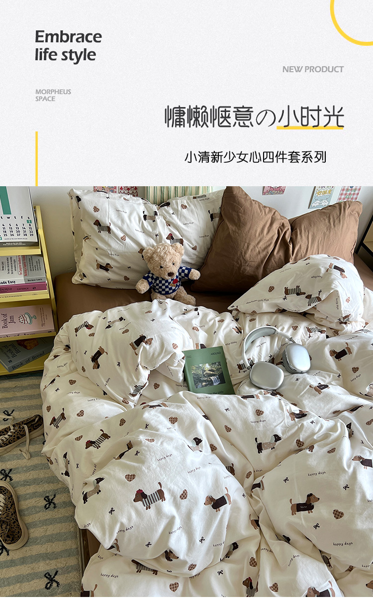 当前位置: 91家纺网 > 商品网购 > 床品套件 > 四件套 > 水洗棉四件套 > 原素 2024学生季专属A类水洗棉印花四件套 小狗总动员