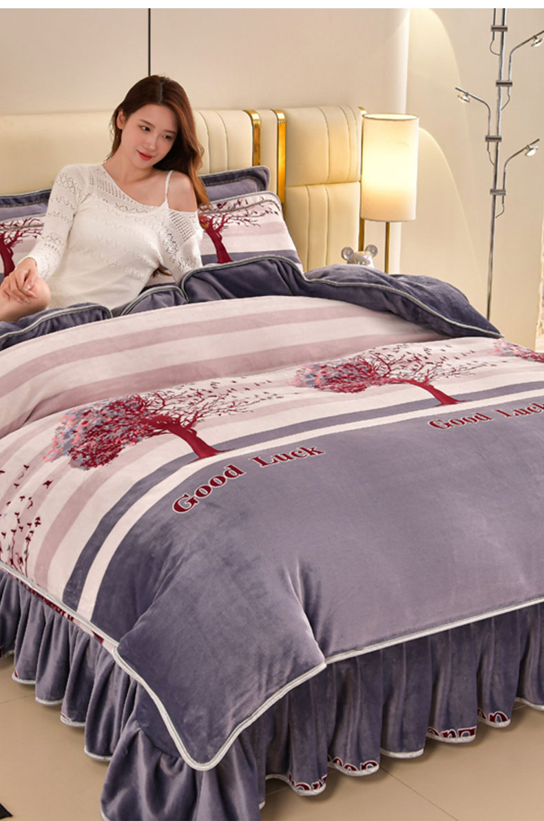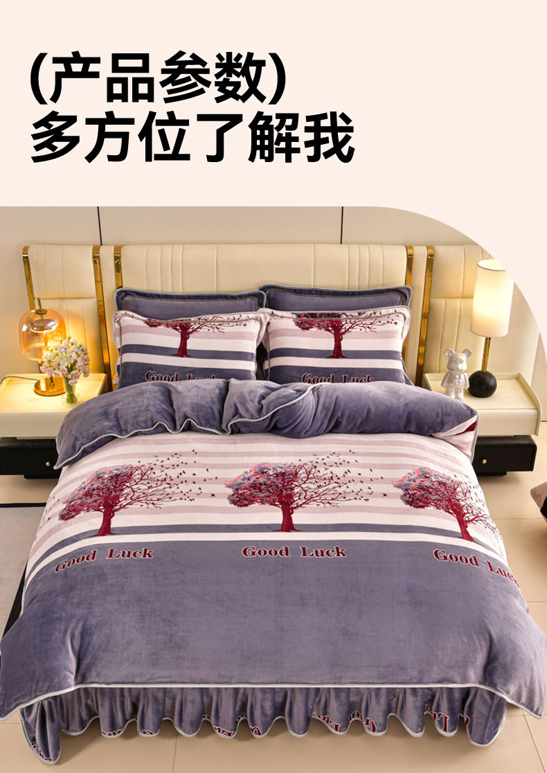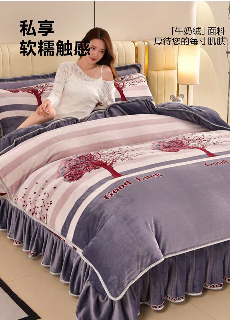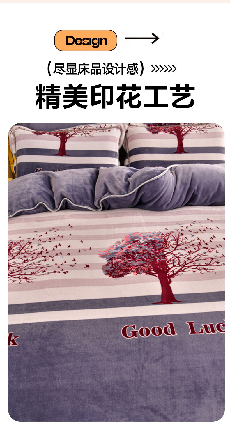 新8.5-9.5斤法莱绒四件套珊瑚牛奶金貂绒四件套床裙 发财树
