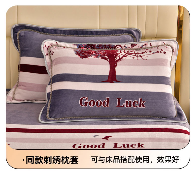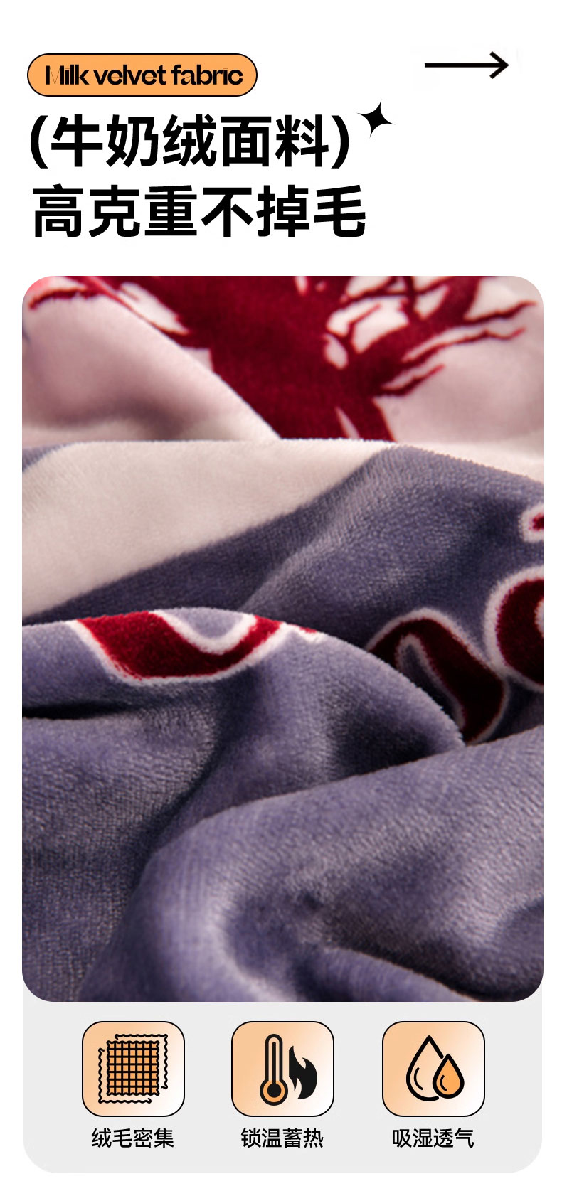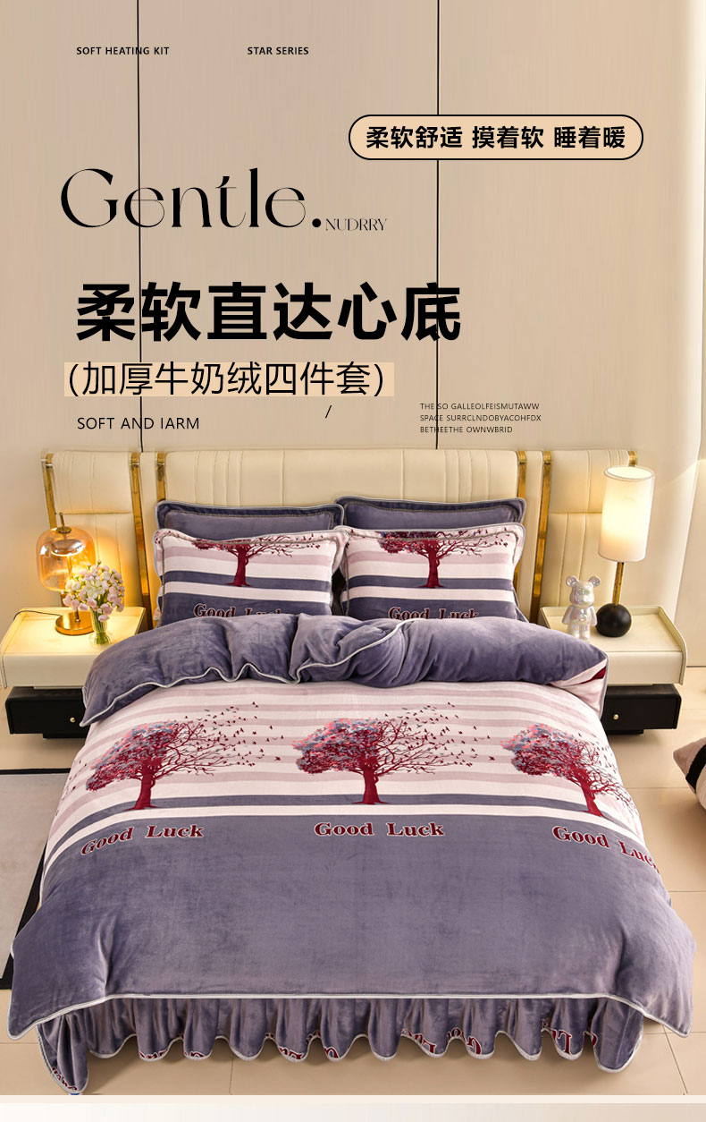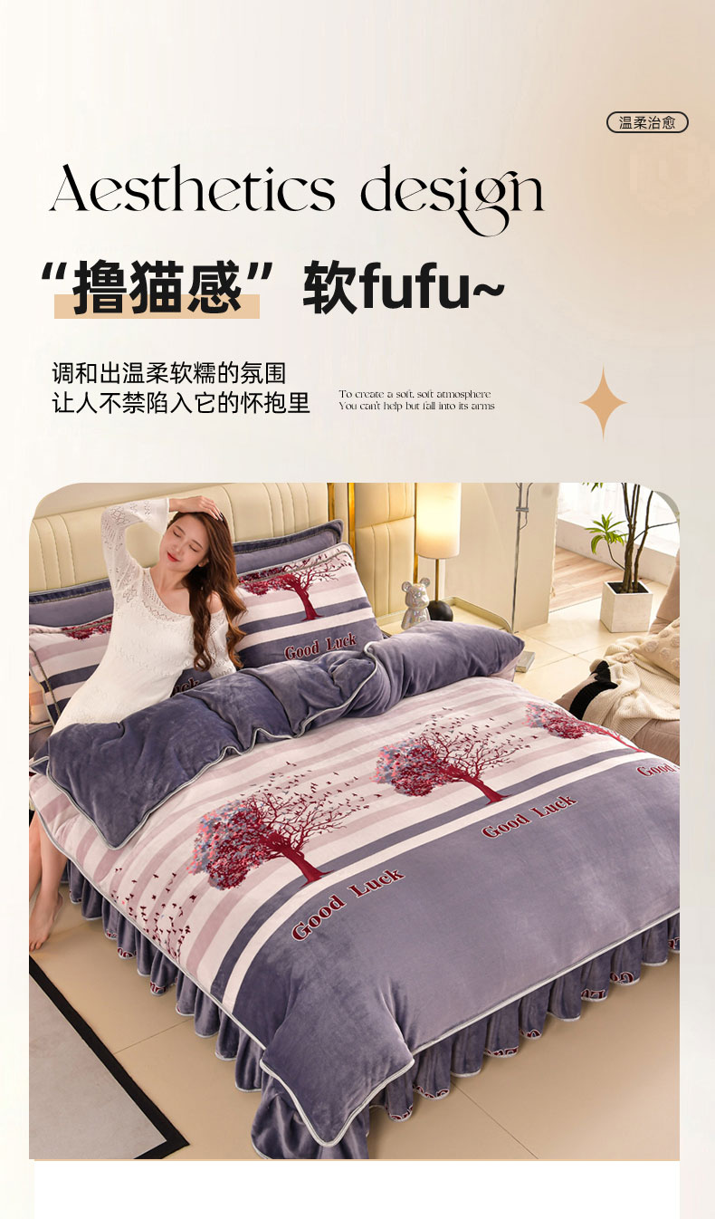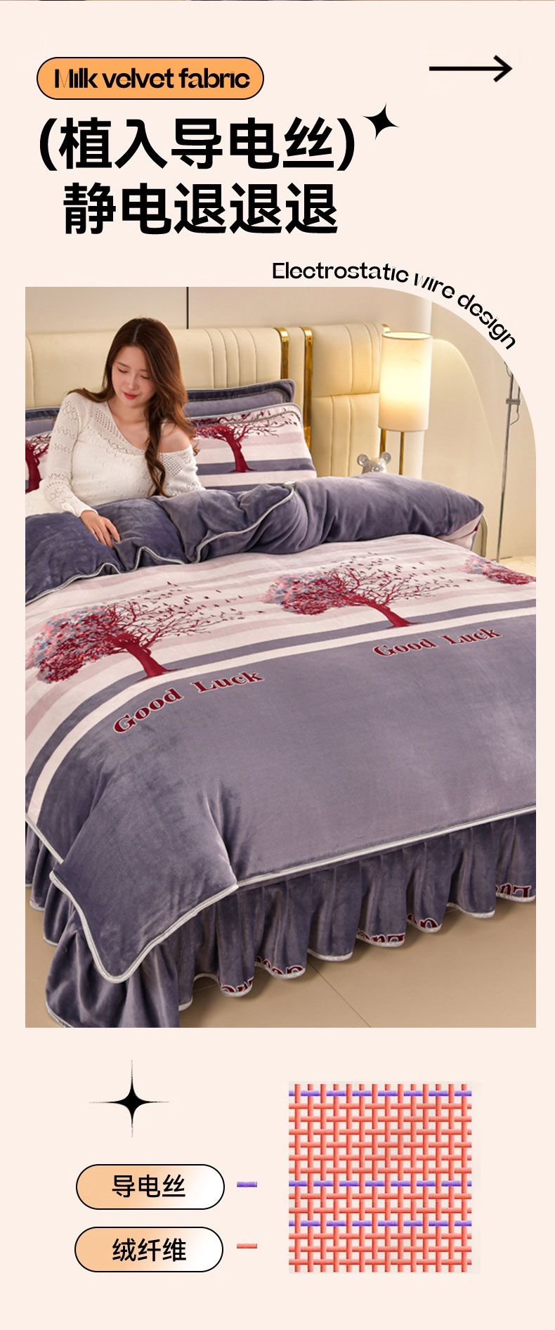 新8.5-9.5斤法莱绒四件套珊瑚牛奶金貂绒四件套床裙 发财树