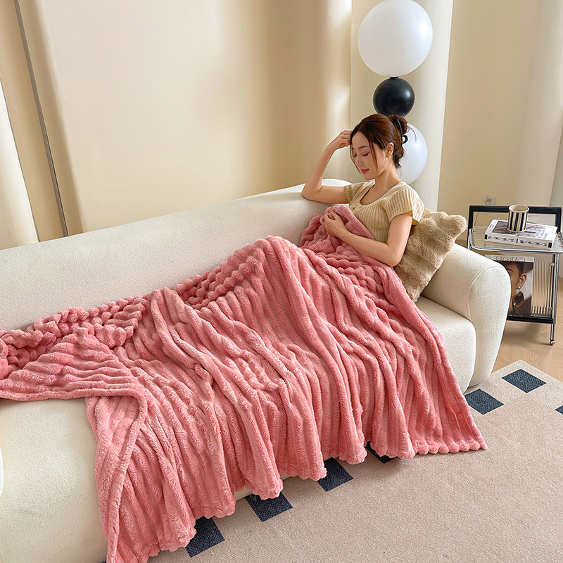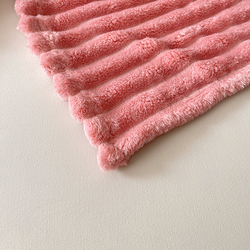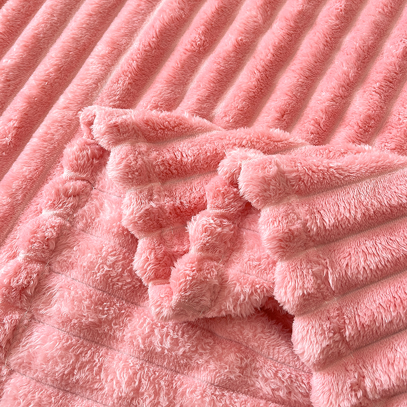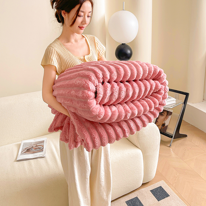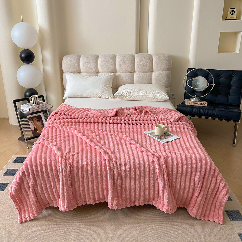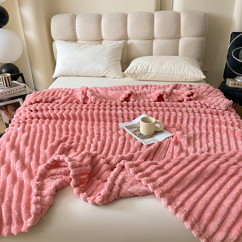 商品名称:千荨 2024新款宽抽条跨境高克重兔兔毛绒毛毯 兔毛粉色