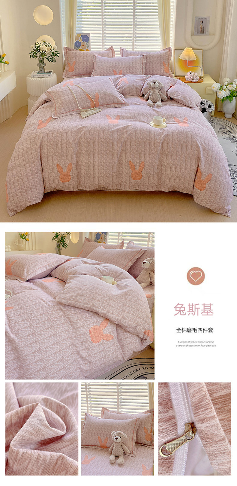 当前位置: 91家纺网 > 商品网购 > 床品套件 > 四件套 > 全棉普通四件套 > 威布斯家居 2024新款AB版全棉生态磨毛四件套 兔斯基