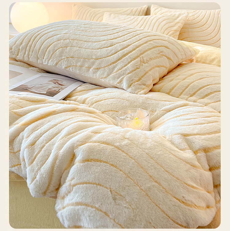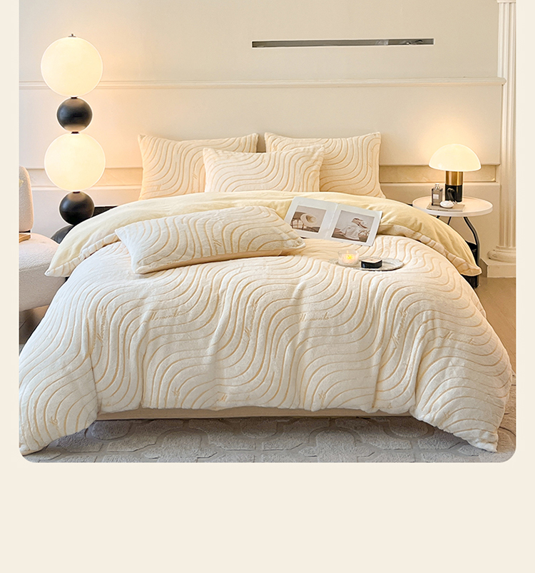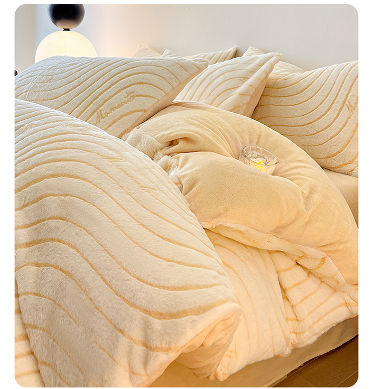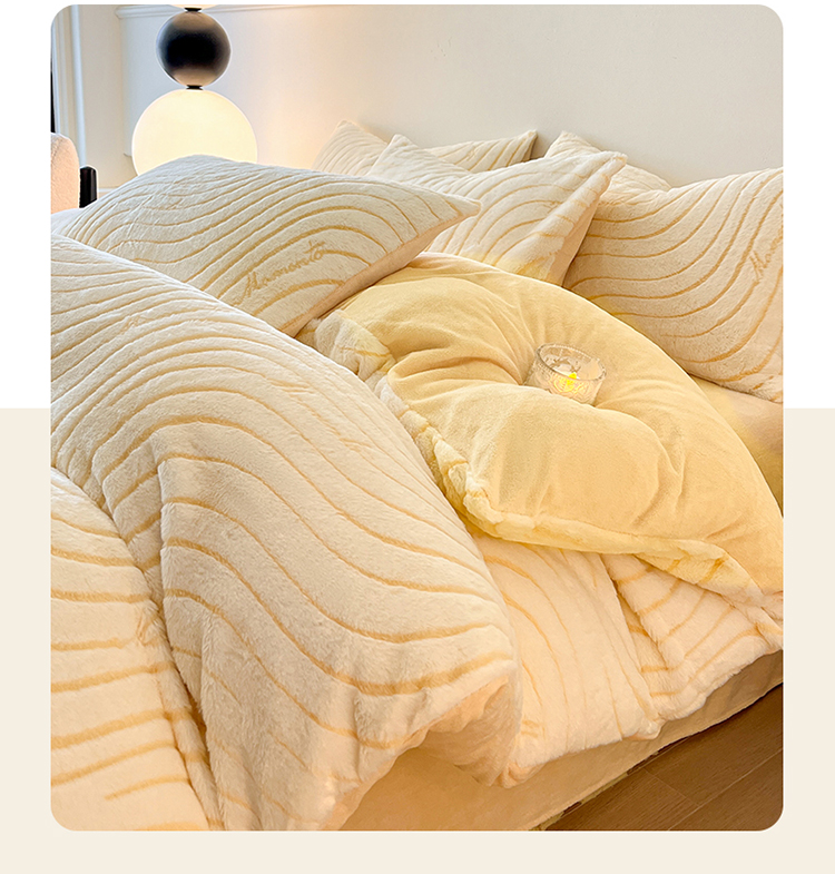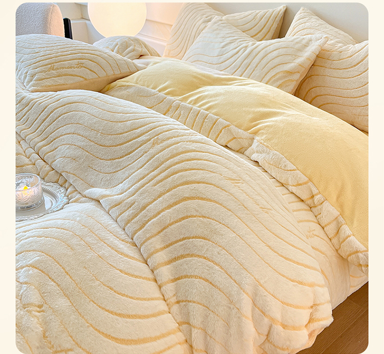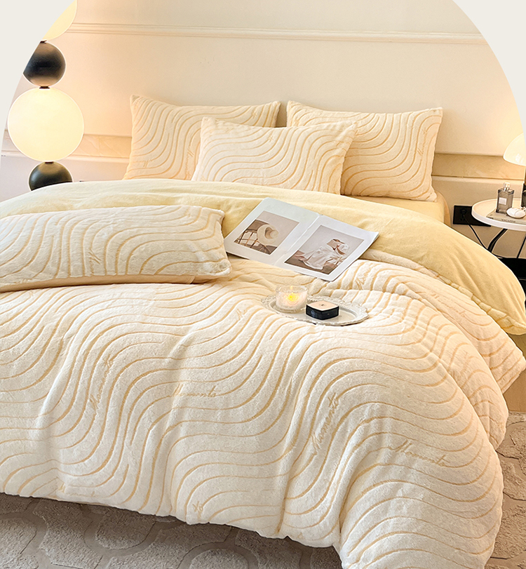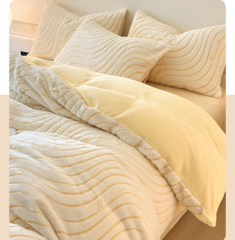 2024新款高克重着色烂花兔毛绒牛奶绒四件套宝宝绒婴儿绒秋冬加厚法莱绒法兰绒珊瑚绒三件套 波浪-芝士黄