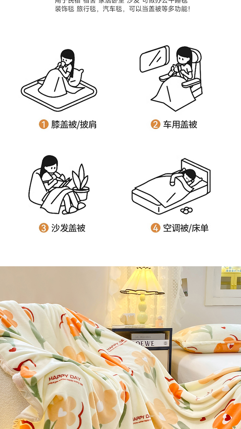 楠沐家纺 2025新款双面牛奶绒多功能印花毛毯 朵朵花开