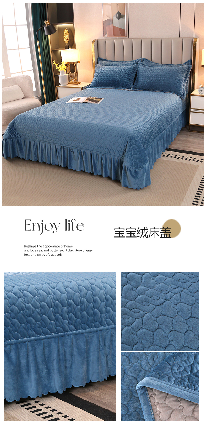 商品名称:悦织湾家纺 2025直播爆款外贸出口跨境热销款宝宝绒婴儿绒夹棉床盖 贵族蓝