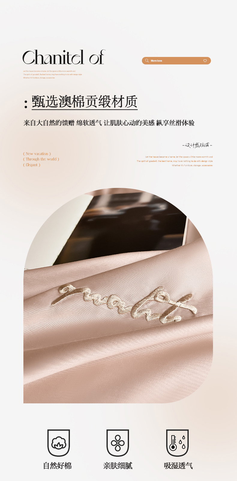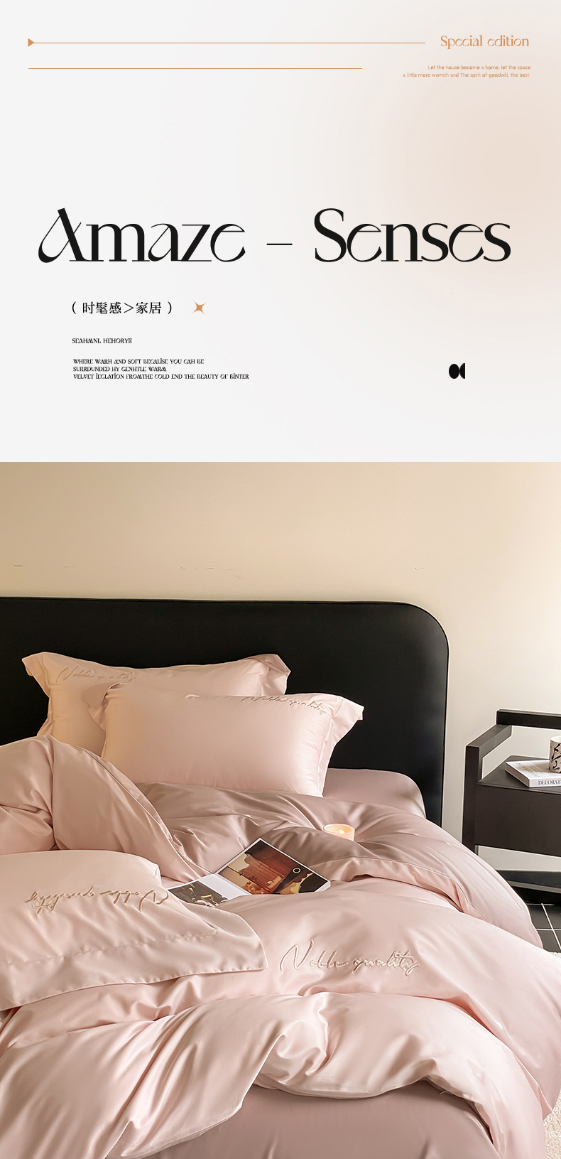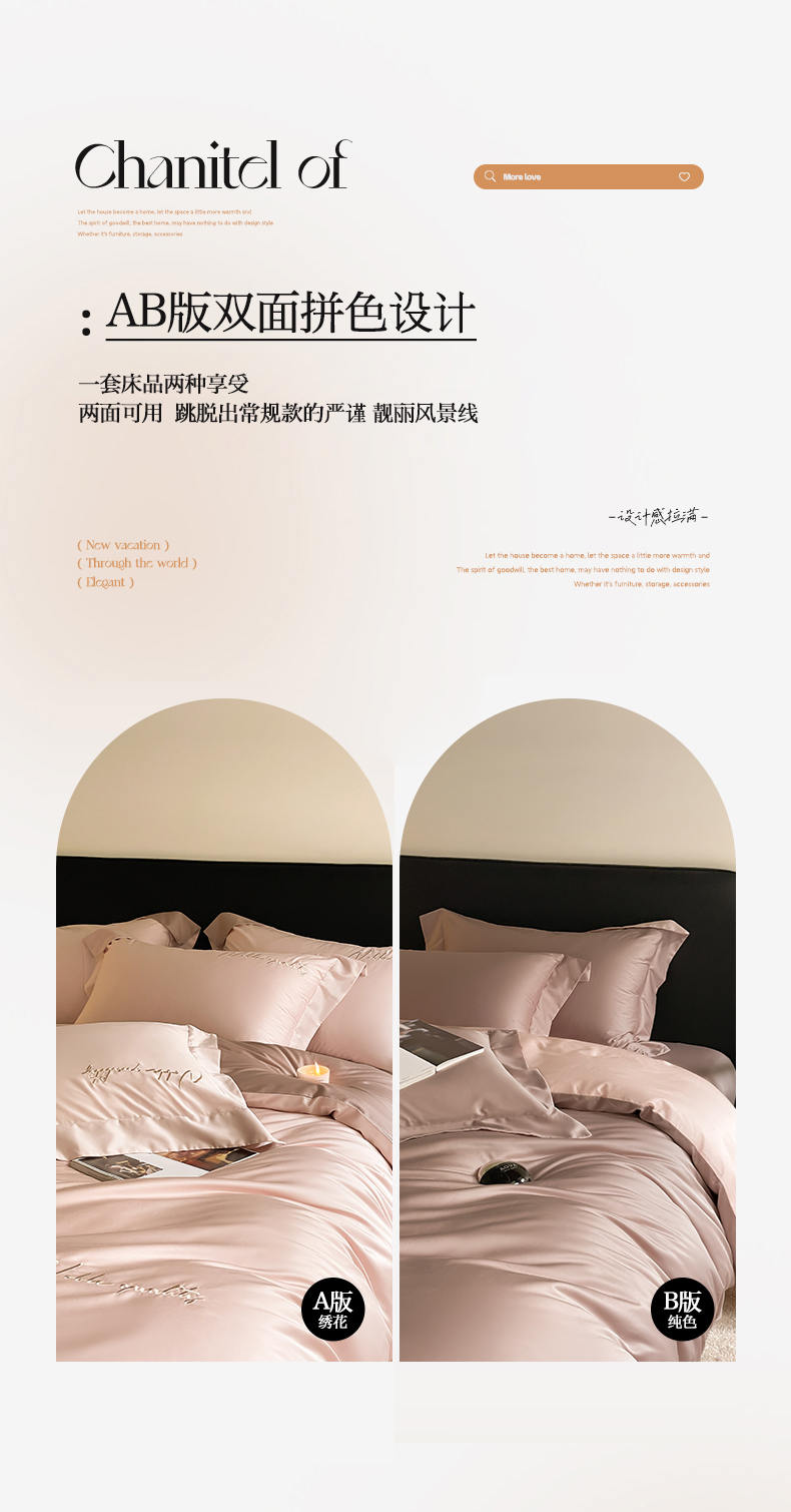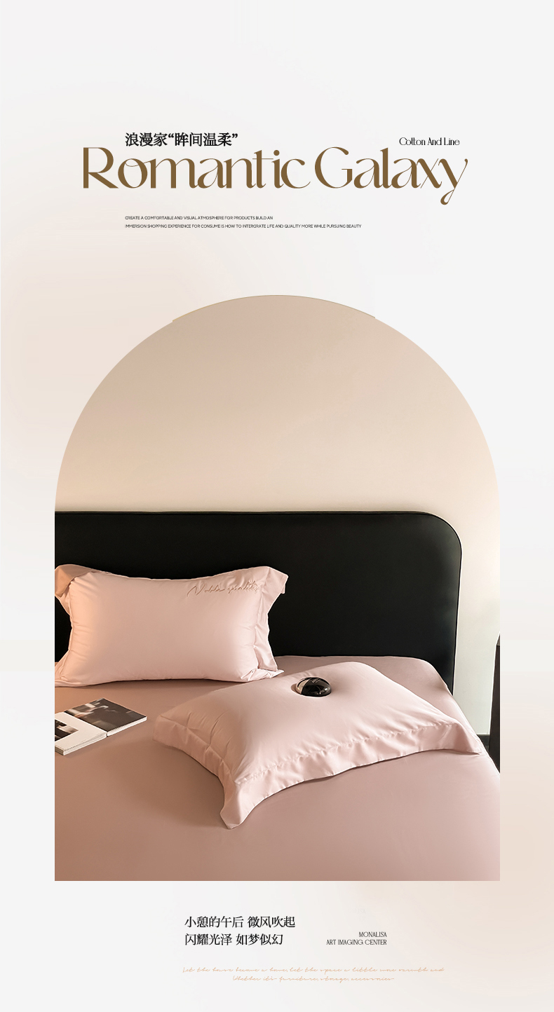 商品名称:由丽家纺 2025新款贡缎纯色刺绣双拼隐形双面用四件套 蜜汁粉+米驼