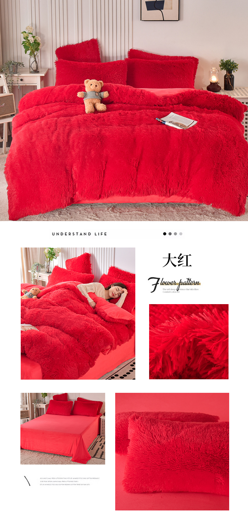 鑫喜莱 2024新款长毛绒四件套 大红