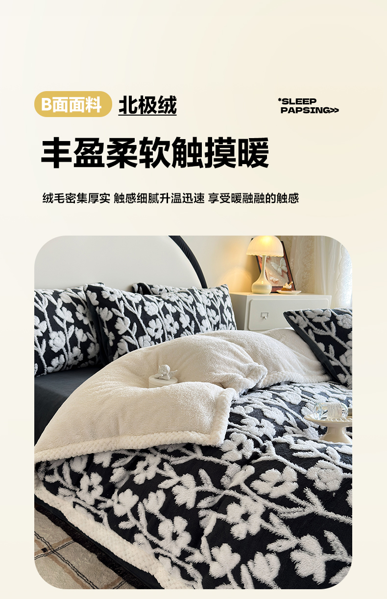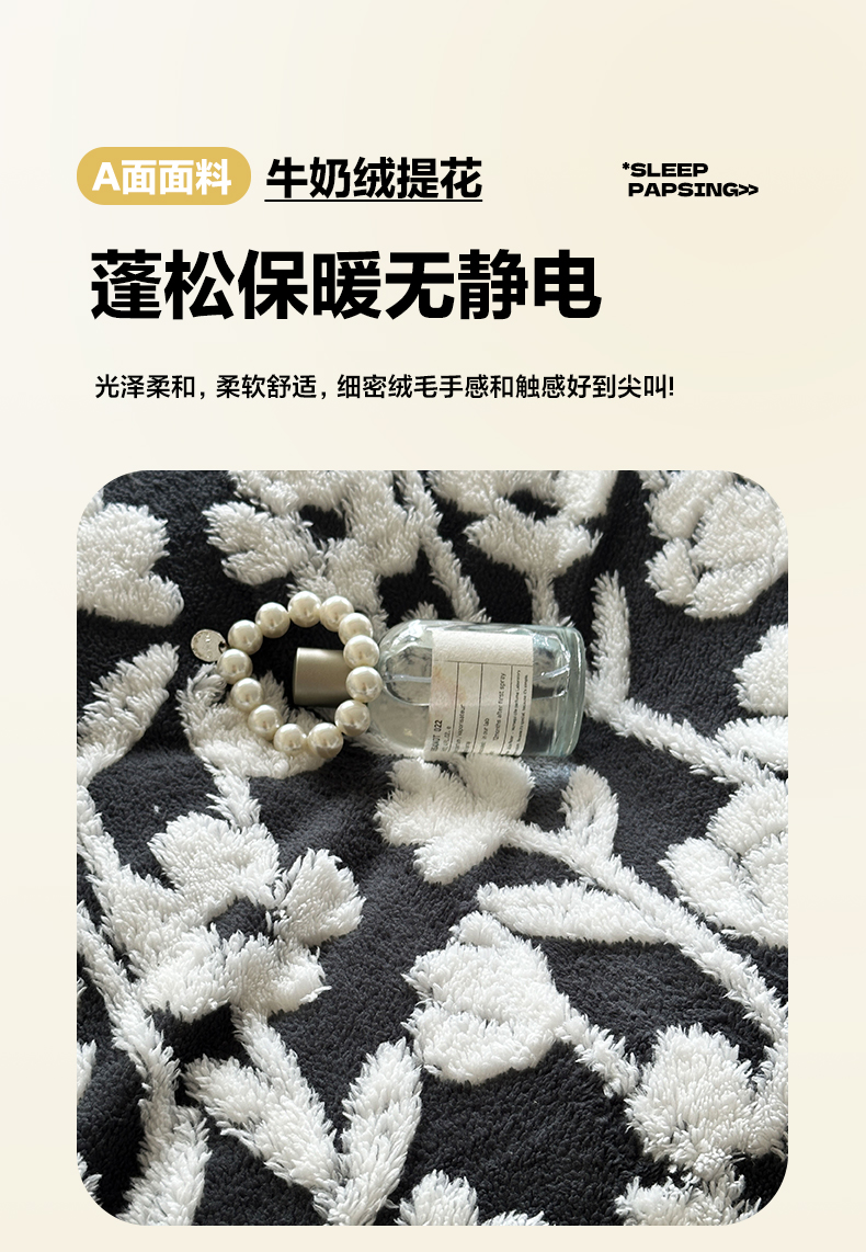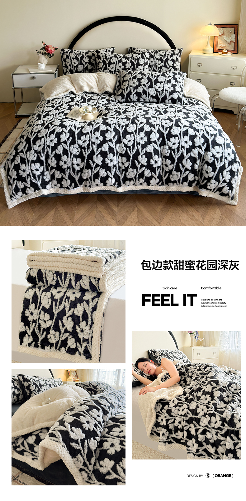 当前位置: 91家纺网 > 商品网购 > 毛毯休闲毯绒毯 > 毛毯 > 莱登卡奴 2024新款牛奶绒阳离子提花北极绒包边款多功能被套毯系列 包边款甜蜜花园深灰