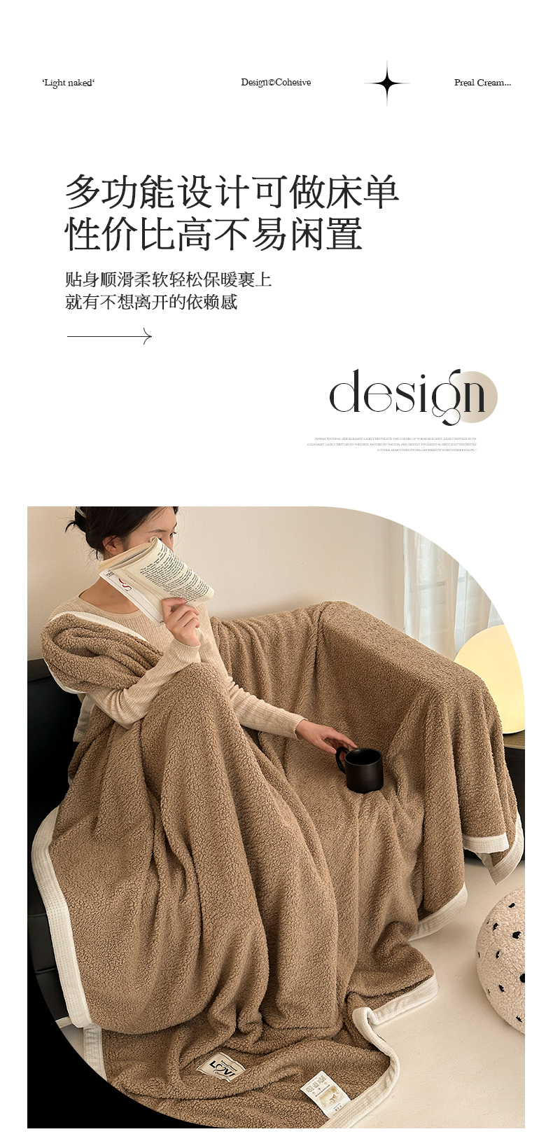 商品名称:沐棉 2024新款羊羔绒泰迪绒毛毯 简约咖