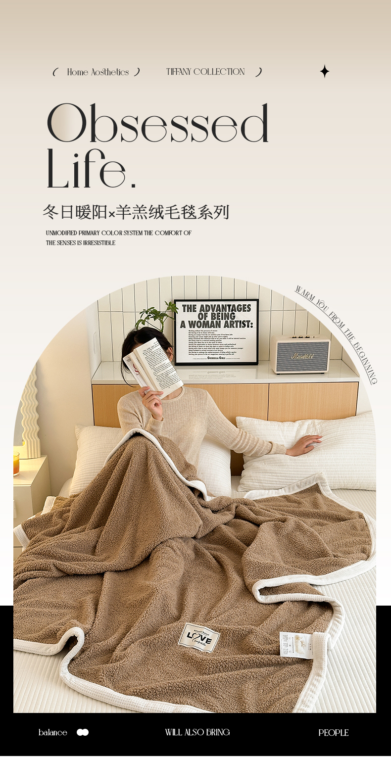 沐棉 2024新款羊羔绒泰迪绒毛毯 简约咖