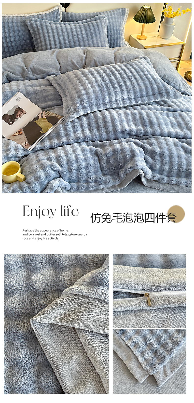 商品名称:芸锦豪 2024新款仿兔毛小泡泡兔兔绒兔毛绒四件套 湖兰
