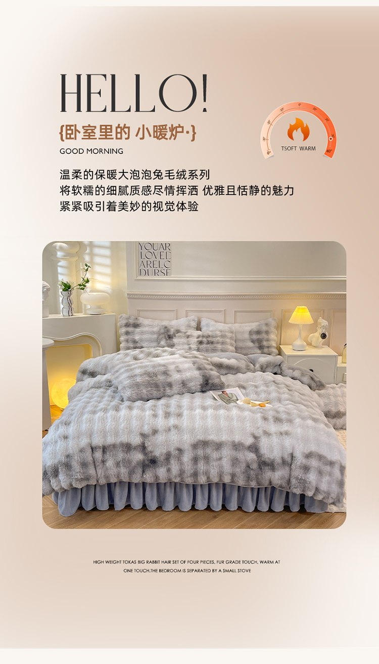 商品名称:丝印良品 2024直播秋冬高克重500克床裙款泡泡四件套纯色印花七彩-高级灰