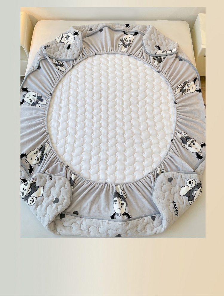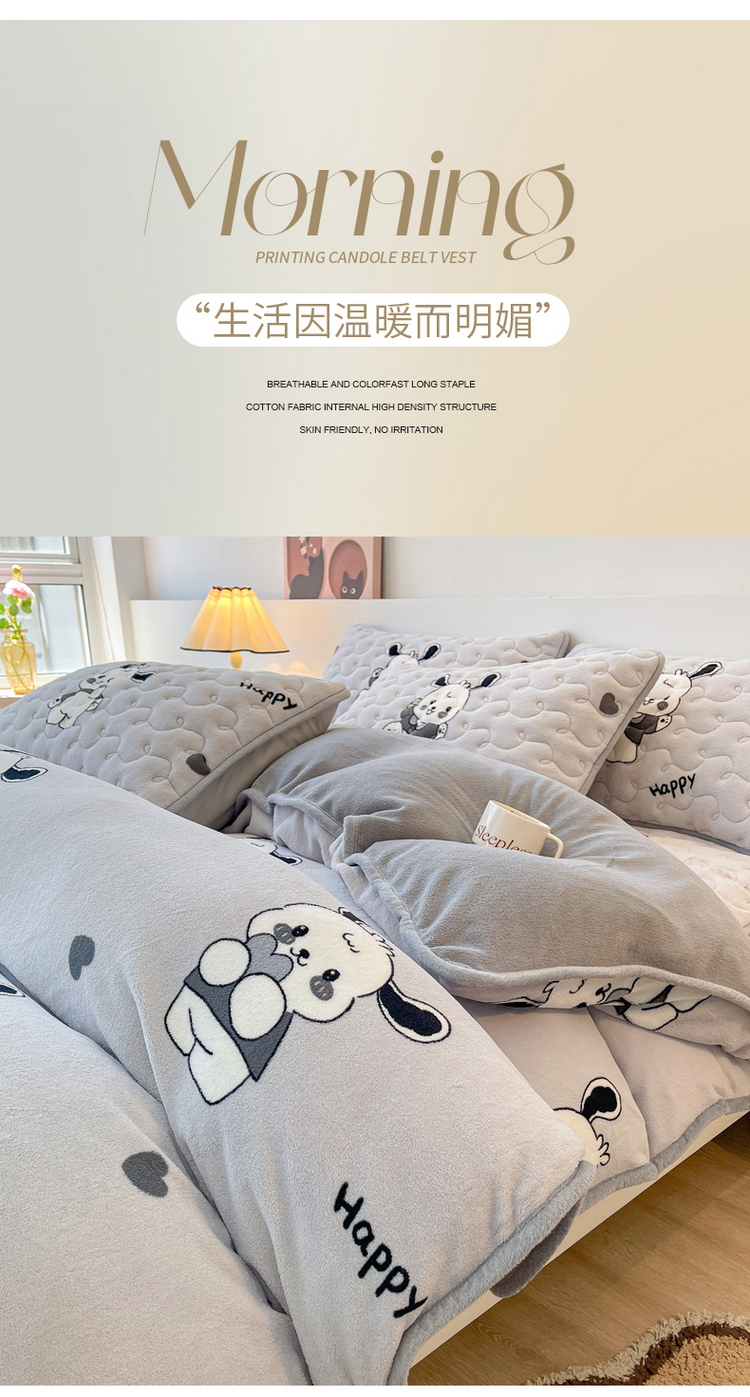2024秋冬A类牛奶绒加厚夹棉床笠+牛奶绒被套四件套俏皮狗