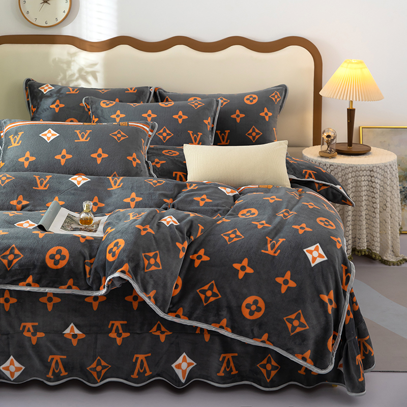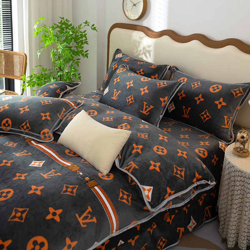 雨萝家纺 2024新款亲肤舒适牛奶绒四件套 大牌风