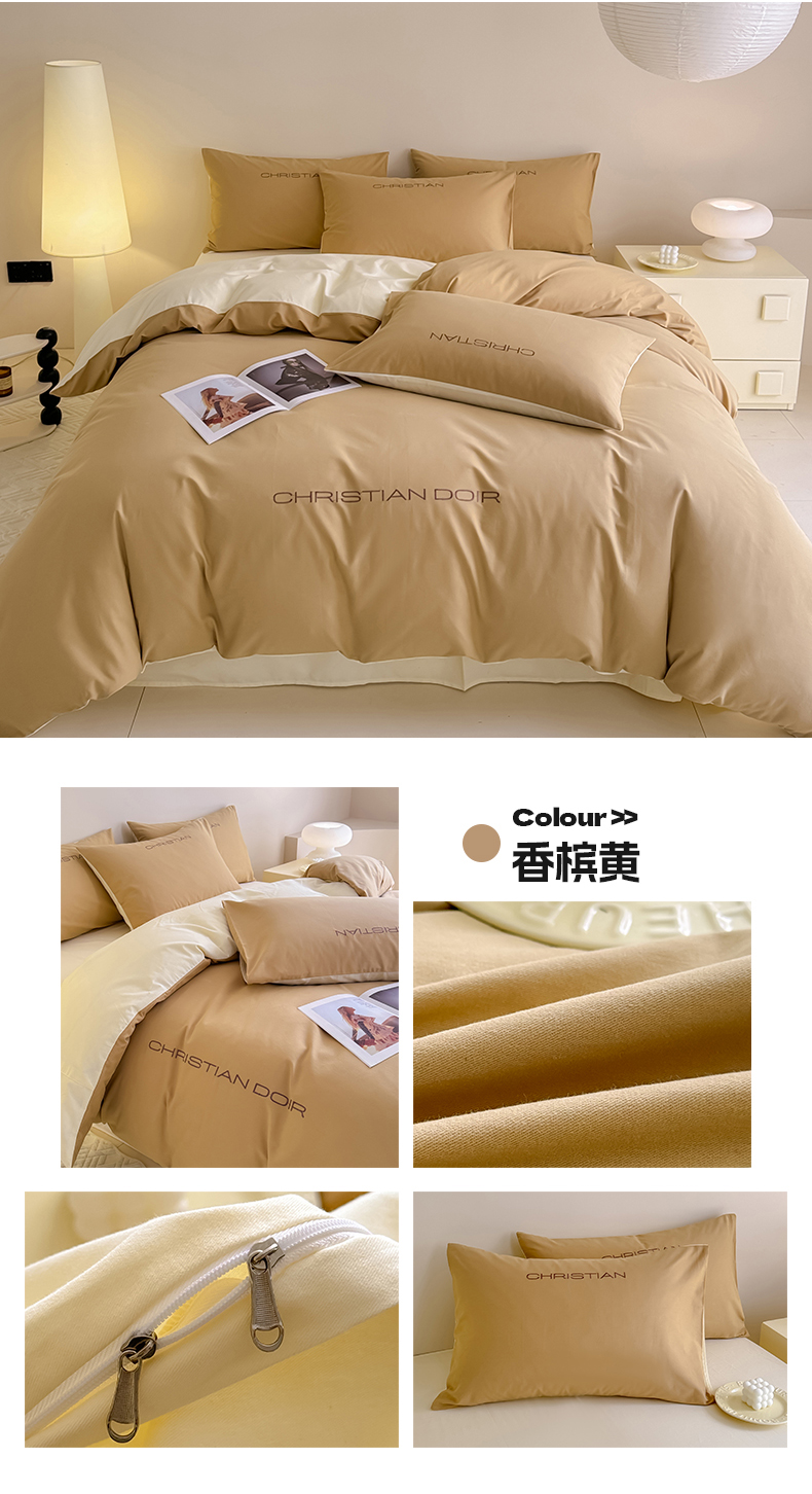 当前位置: 91家纺网 > 商品网购 > 床品套件 > 四件套 > 普通磨毛四件套 > 典曼家纺 2024新款A类简约轻奢款磨毛绣花四件套 香槟黄