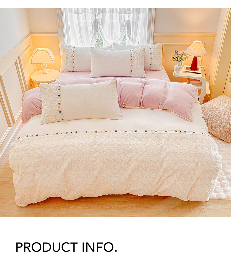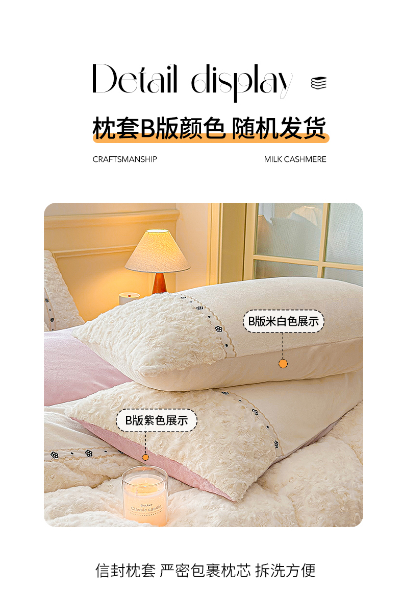 商品名称:安莱生活 2024新款优雅獭兔牛奶绒刺绣工艺款四件套 暖暖恋-风格二 玫瑰果粉