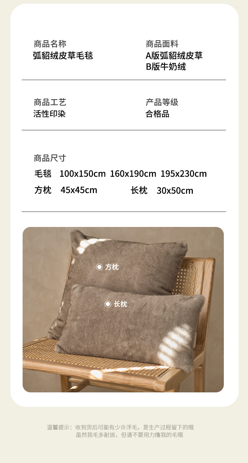 商品名称:安莱生活 2024新款弧貂绒皮草毛毯 弗兰迪