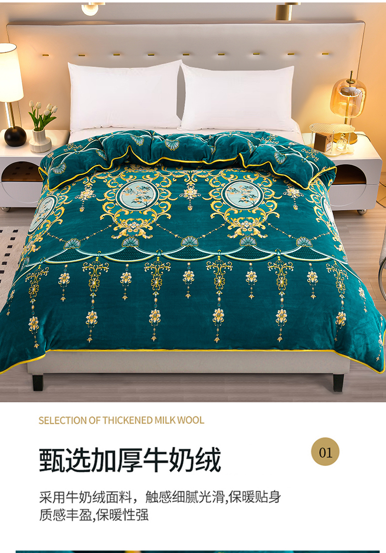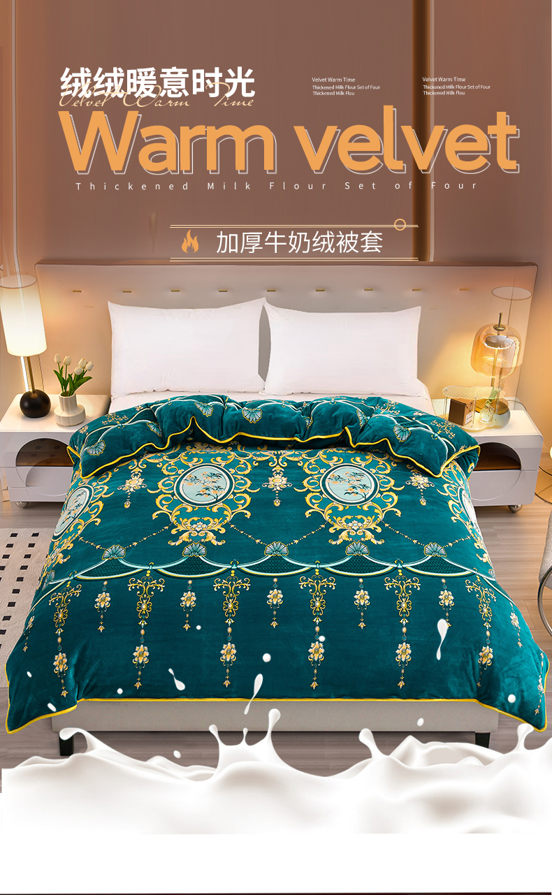 商品名称:绒品荟家纺 2025新款加厚牛奶绒单被套金貂绒法莱绒冬季法兰绒高克重被罩 缘定今生(绿)