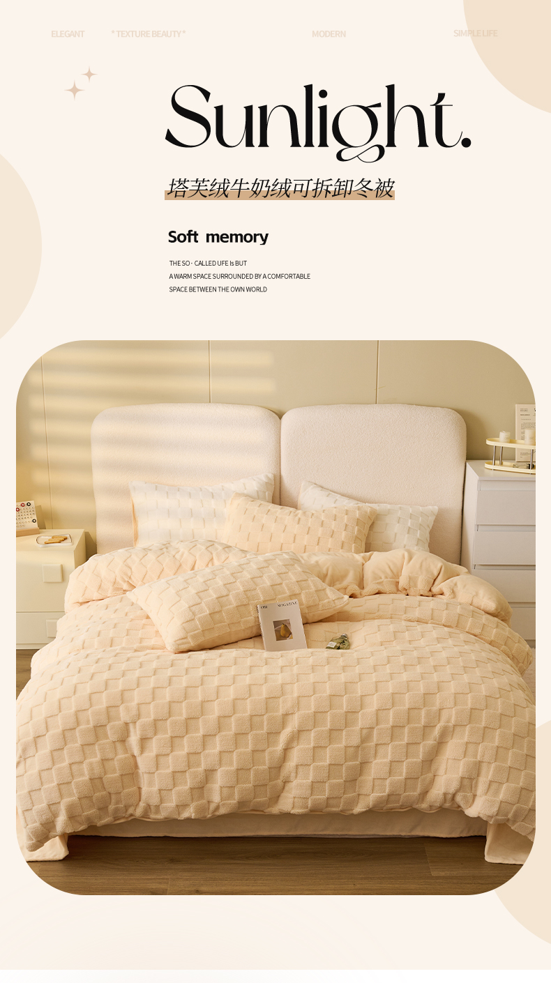 2024新款塔芙绒牛奶绒可拆洗冬被-初暖系列 初暖-奶黄