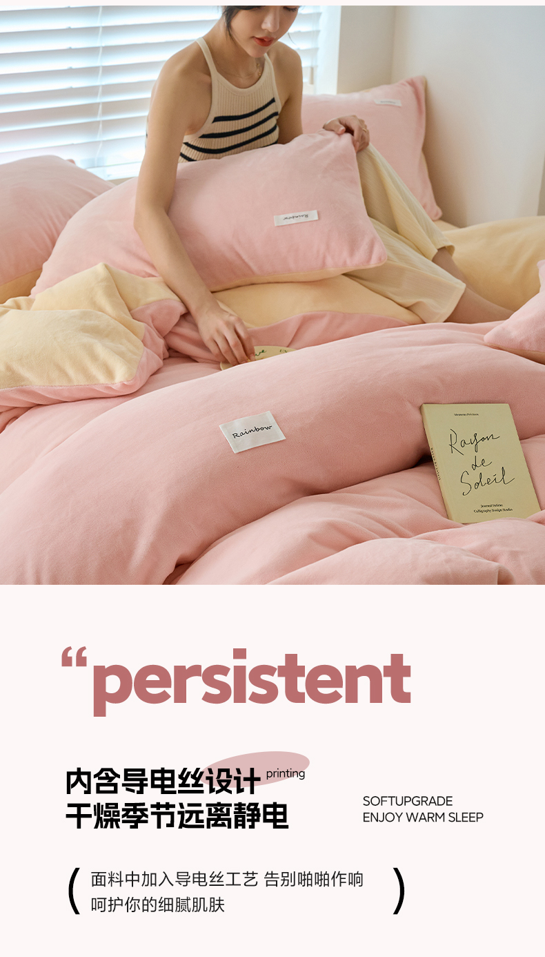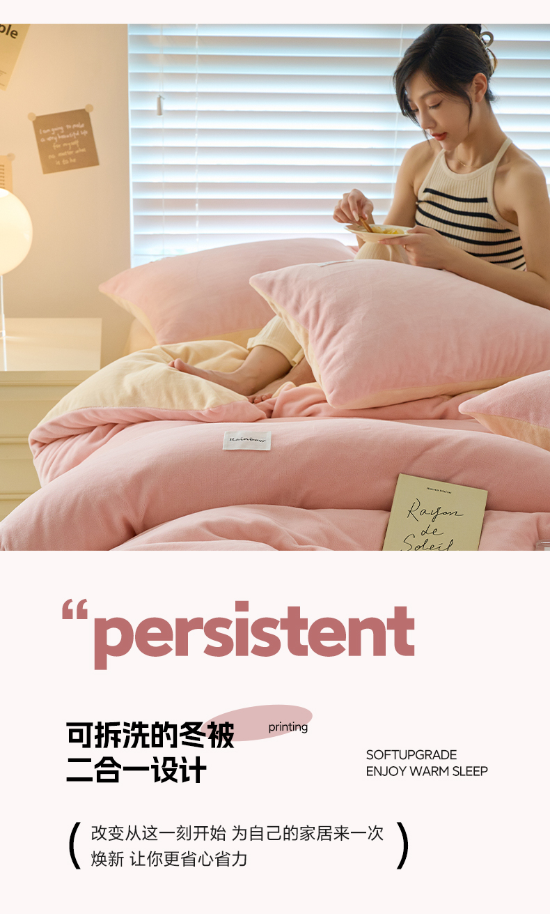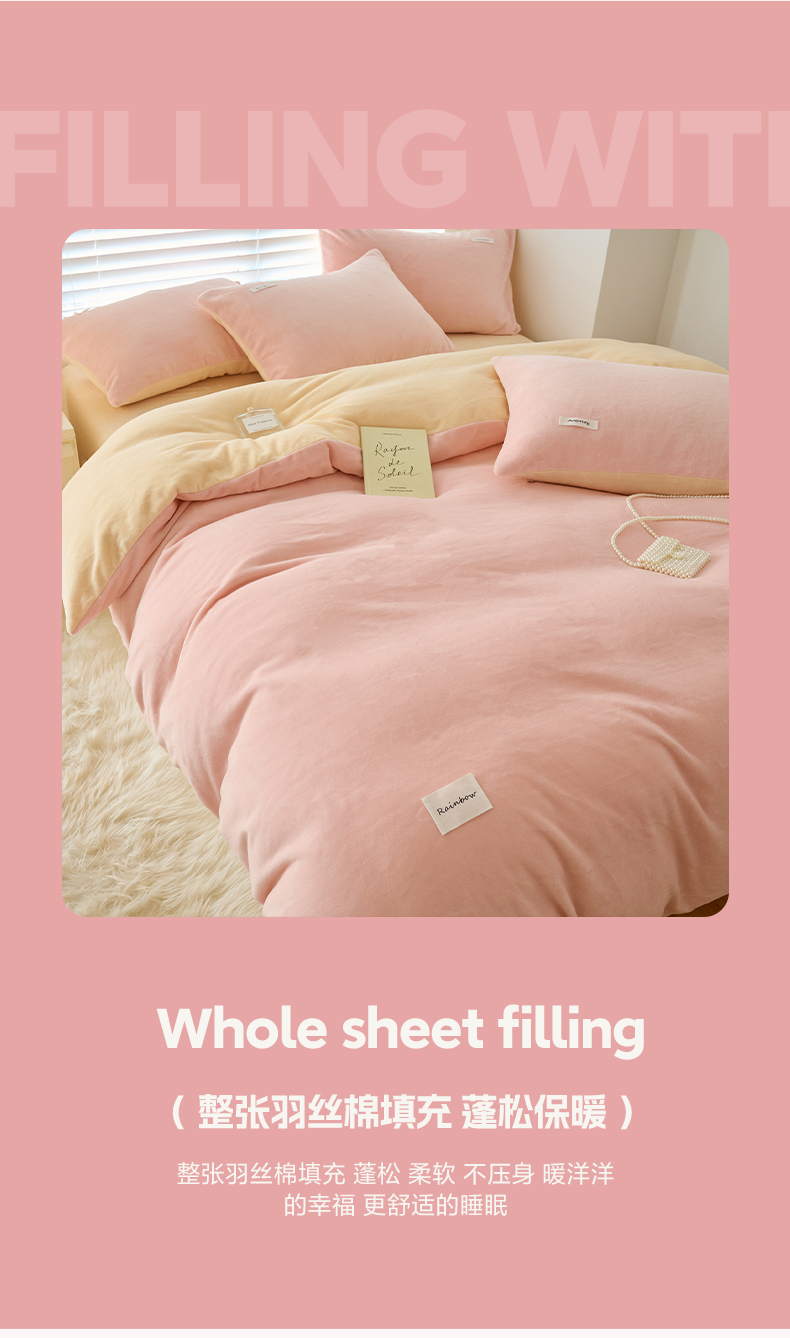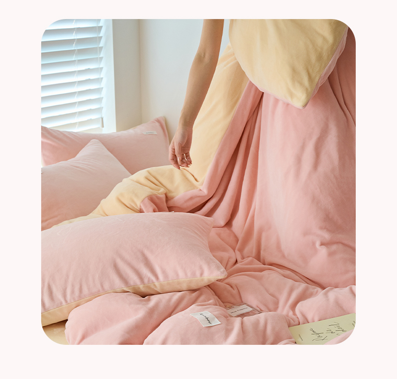 2024新款ins简约风牛奶绒双拼可拆洗冬被 被子被芯 微醺奶油黄粉