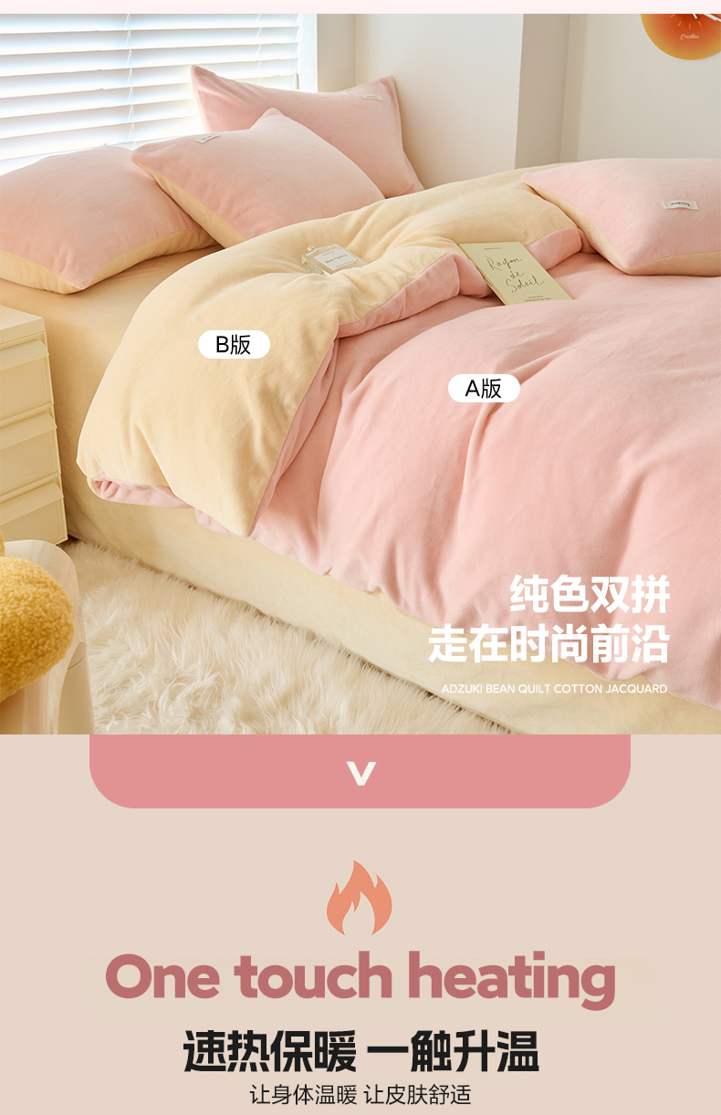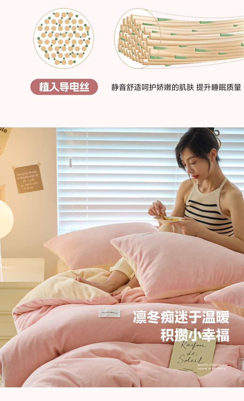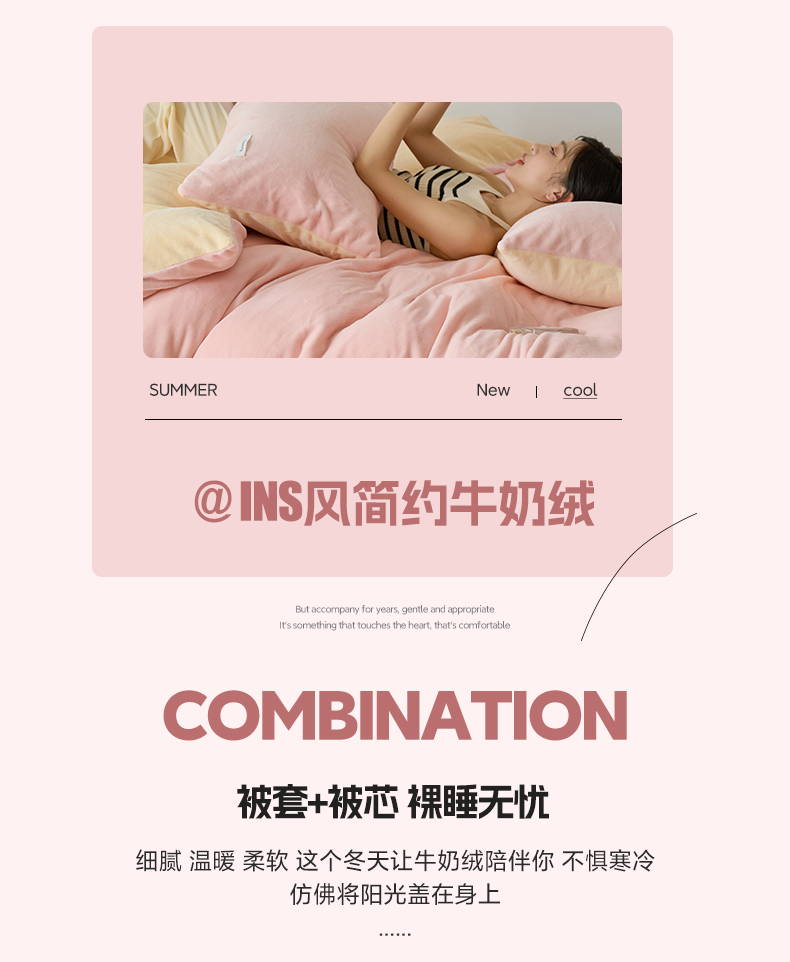 2024新款ins简约风牛奶绒双拼可拆洗冬被 被子被芯 微醺奶油黄粉