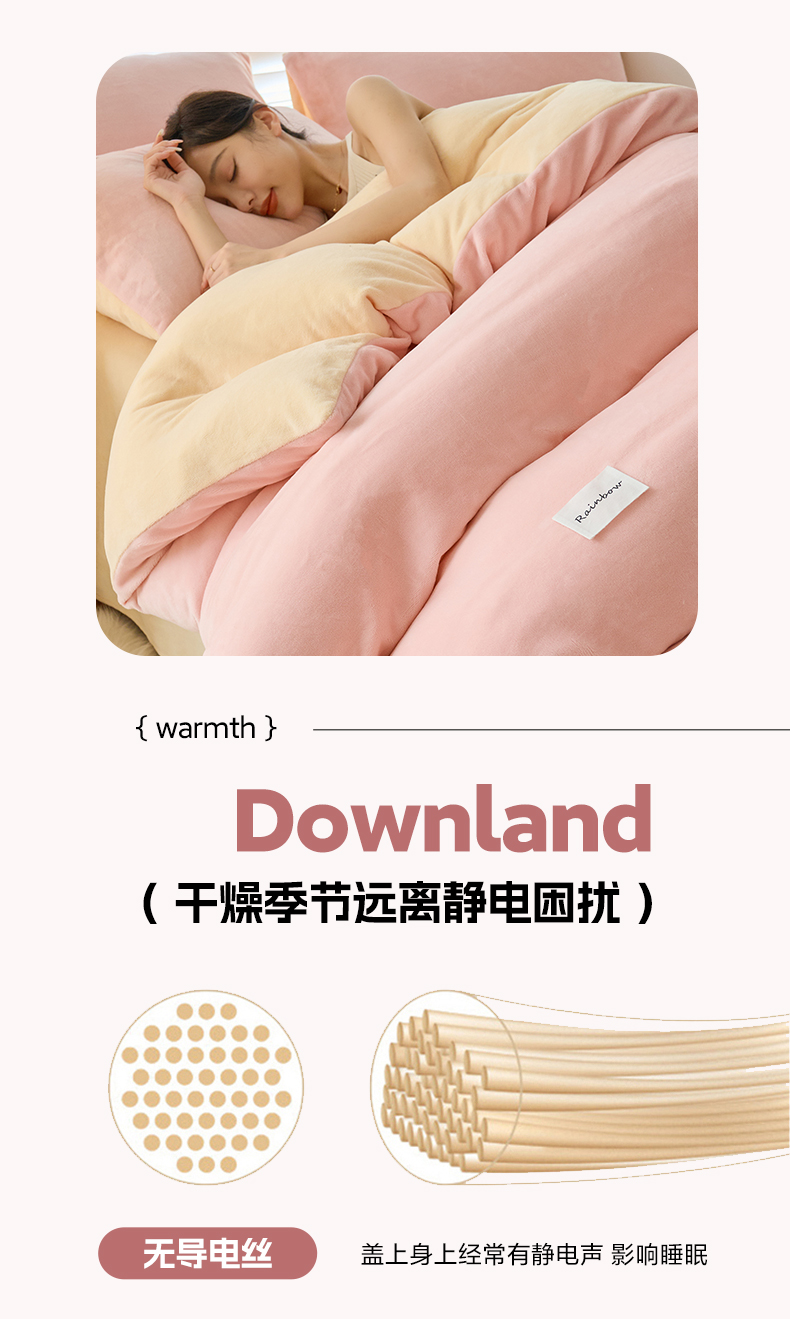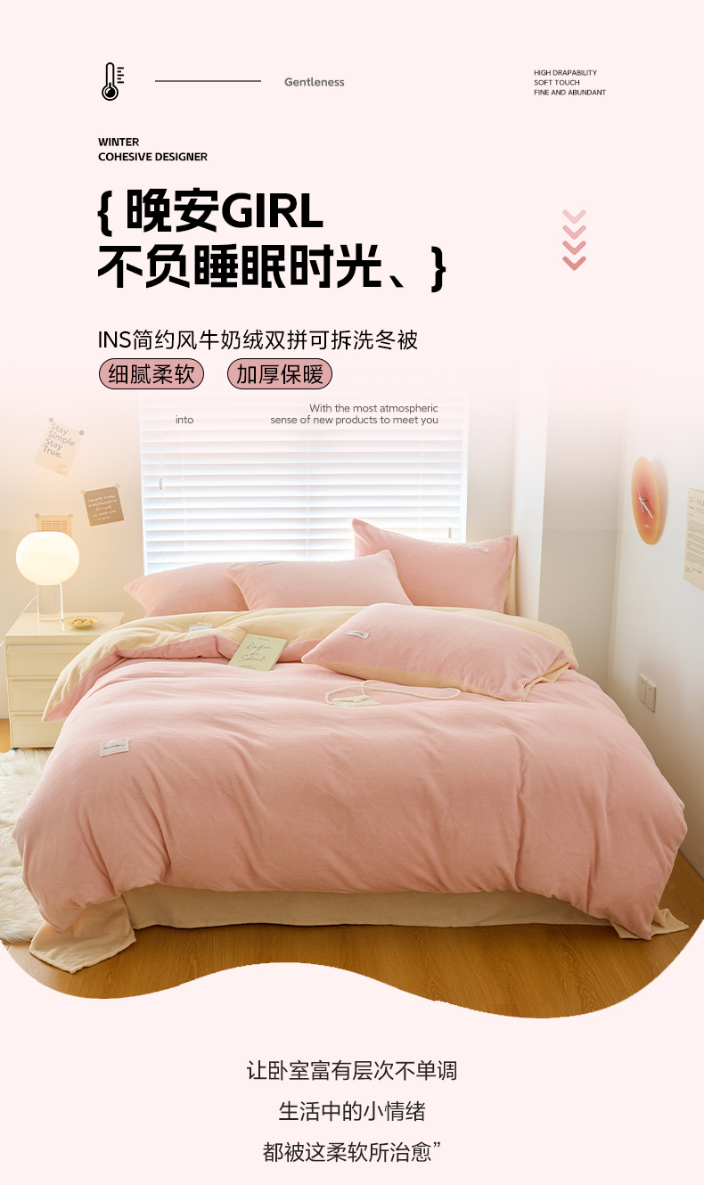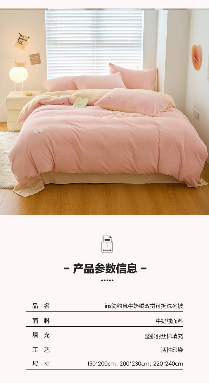 • 91家纺网 家纺一手货源 找家纺 2024新款ins简约风牛奶绒双拼可拆洗冬被 被子被芯 微醺奶油黄粉