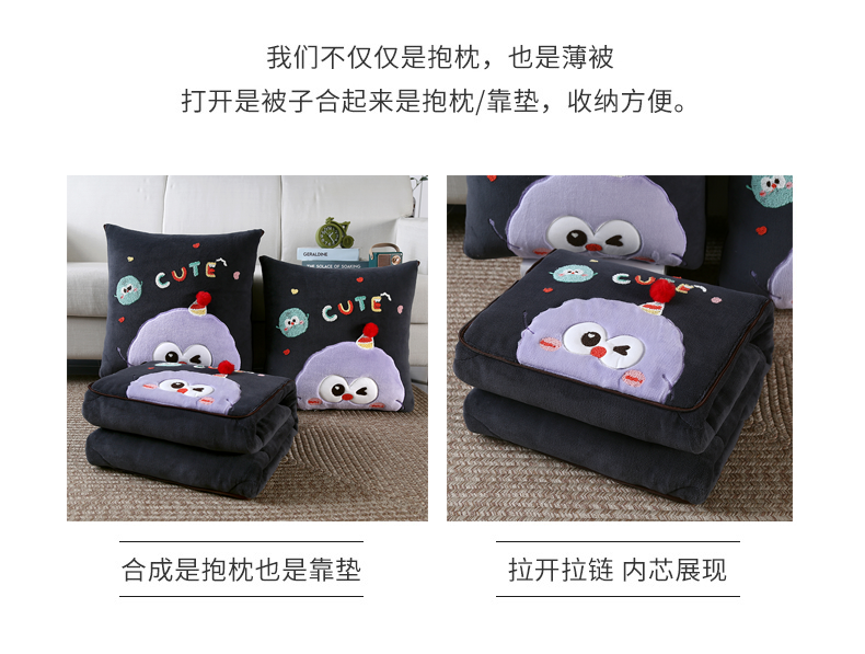 (总)素玖抱枕被 2024新款牛奶绒亲肤刺绣抱枕被-甜崽派对,甜崽派对-粉,甜崽派对-黑,甜崽派对-兰,甜崽派对-青,甜崽派对-紫