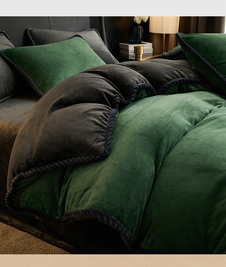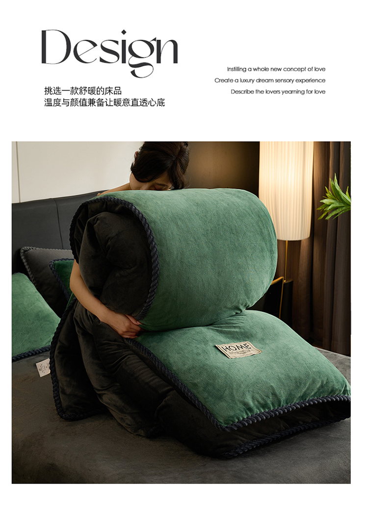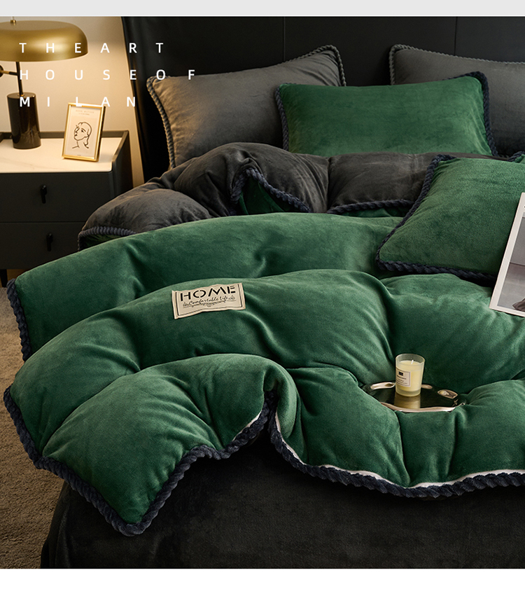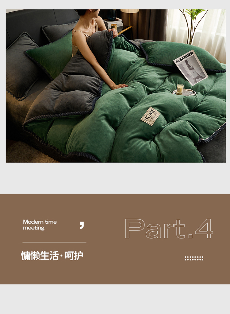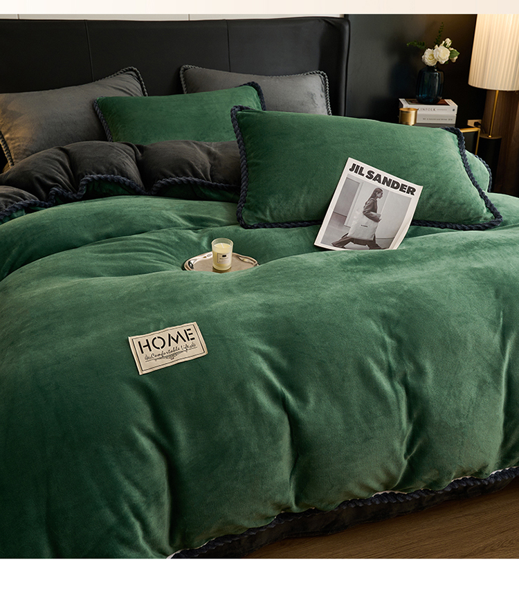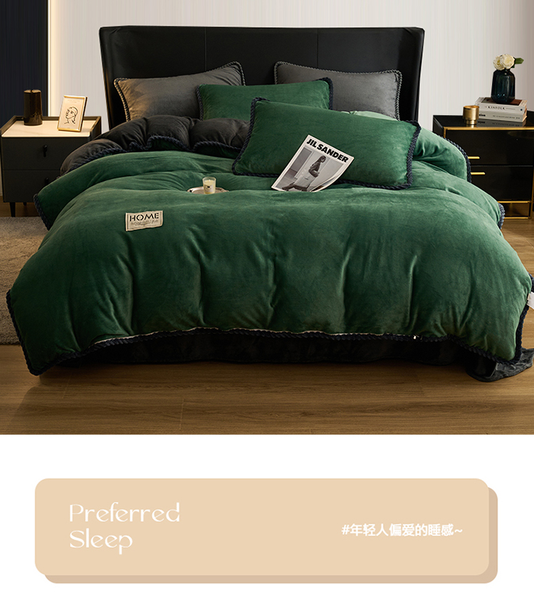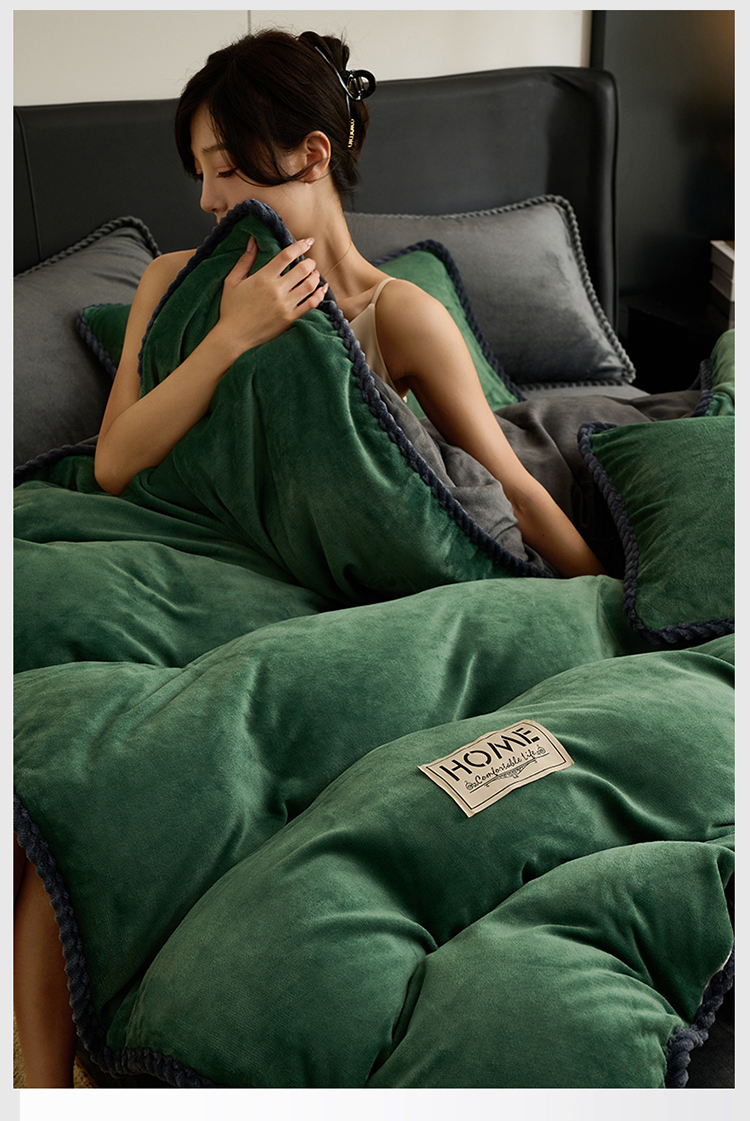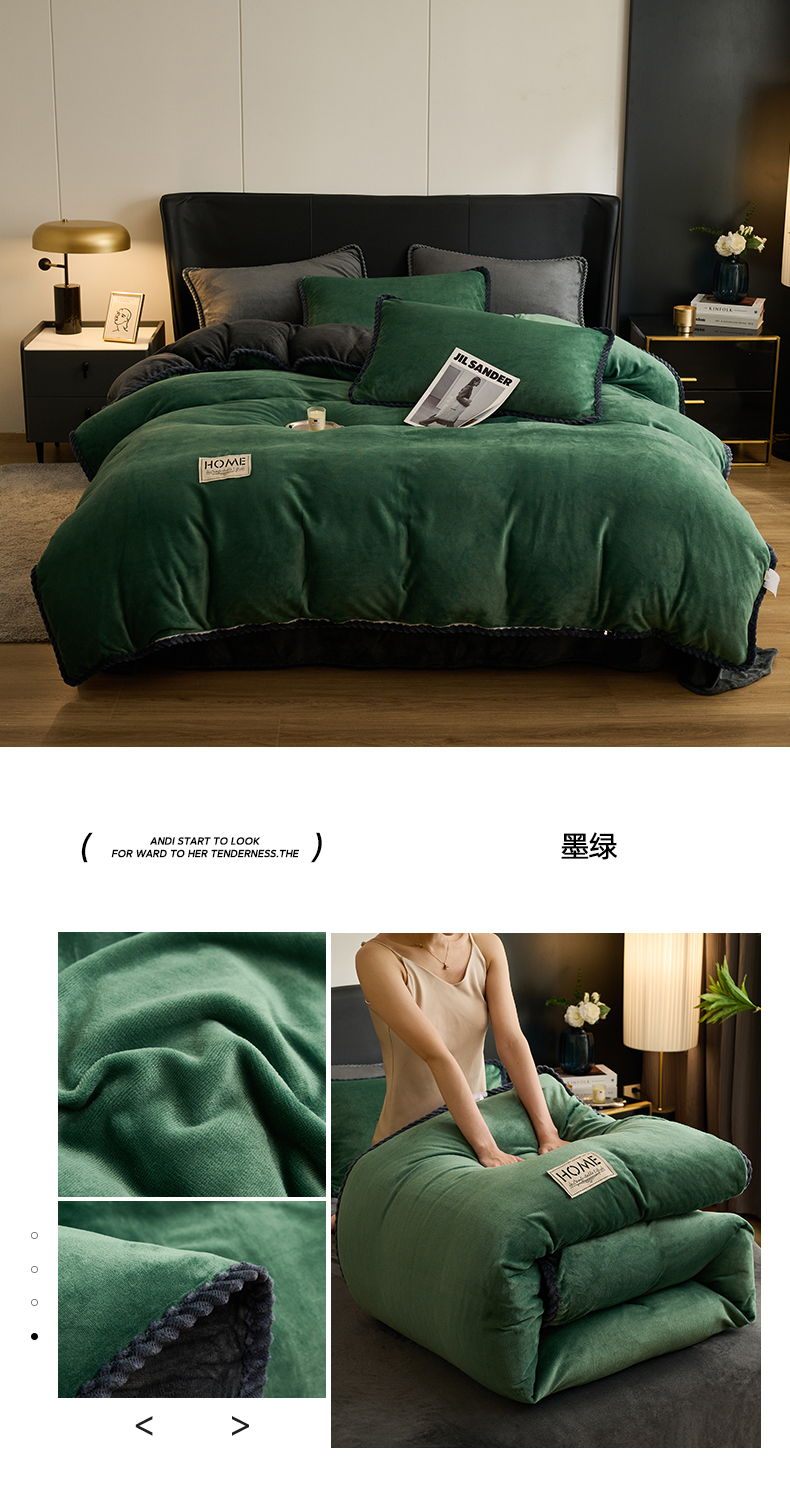 当前位置: 91家纺网 > 商品网购 > 床品套件 > 四件套 > 牛奶绒四件套 > 睡美美 2025新款高克重牛奶绒四件套水晶绒臻绒跑量床品套件 墨绿
