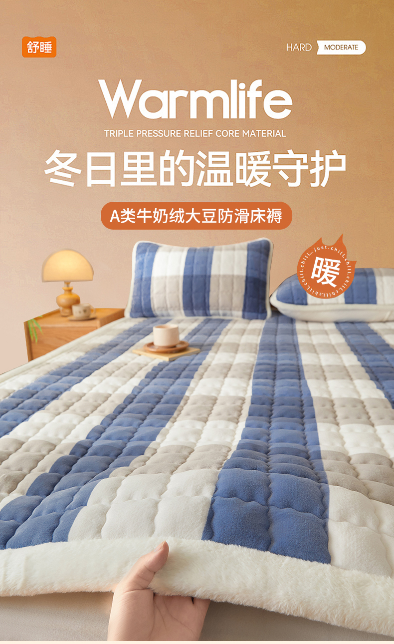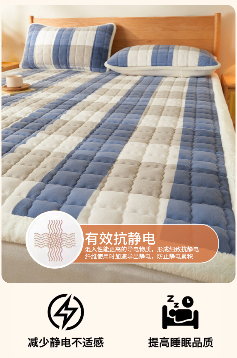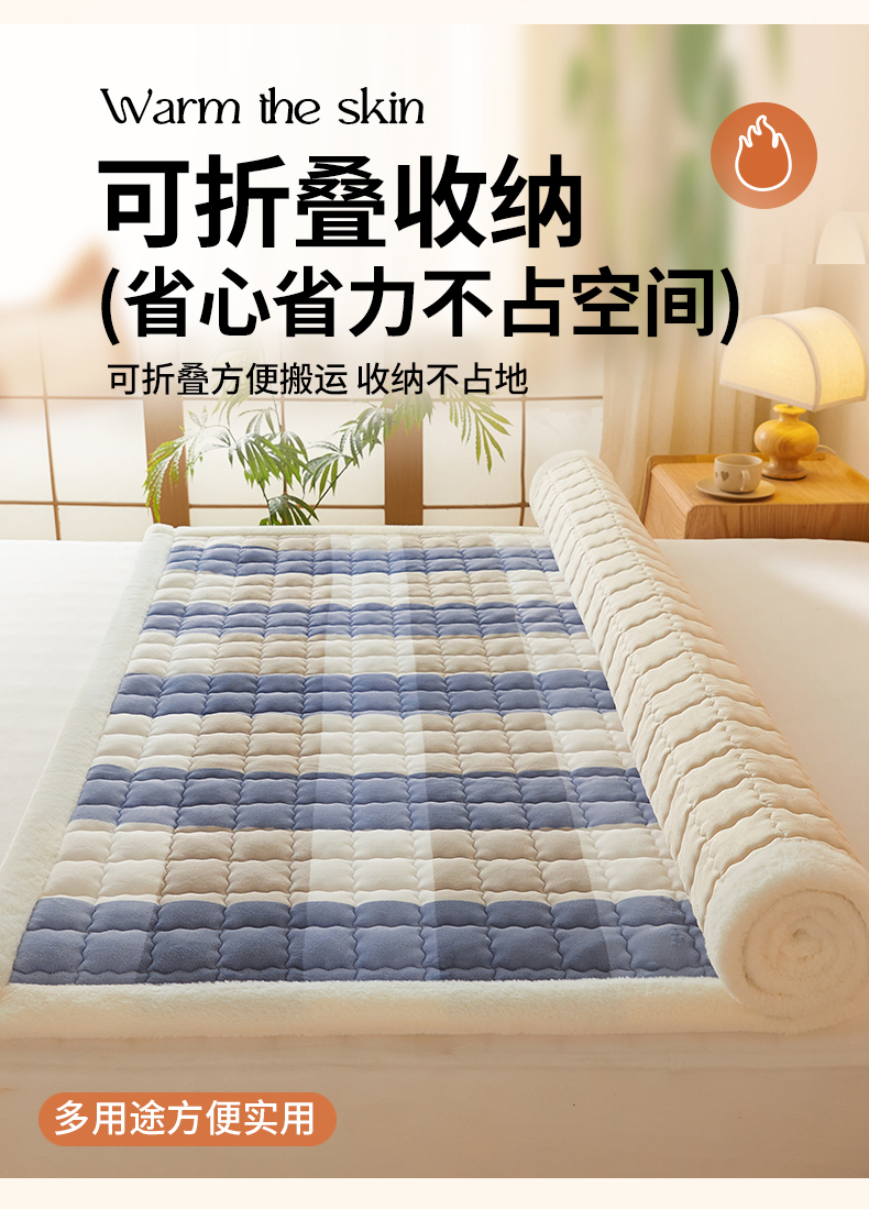 当前位置: 91家纺网 > 商品网购 > 床垫/床褥 > 普通床垫 > 鑫钰 2024秋冬新款加厚牛奶绒床垫床褥床护垫 暖格-蓝大格