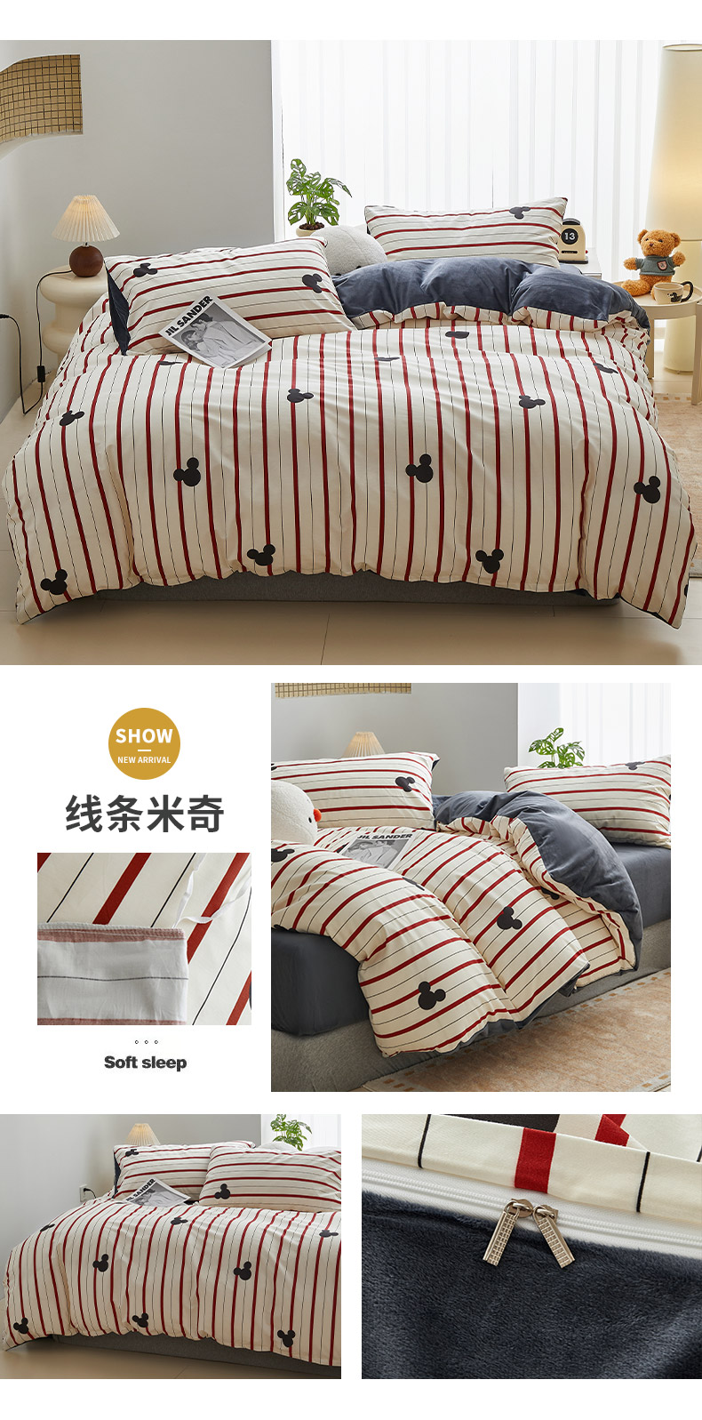 商品名称:怡家居 2024秋冬新品AB版加厚保暖全棉加绒四件套 线条米奇