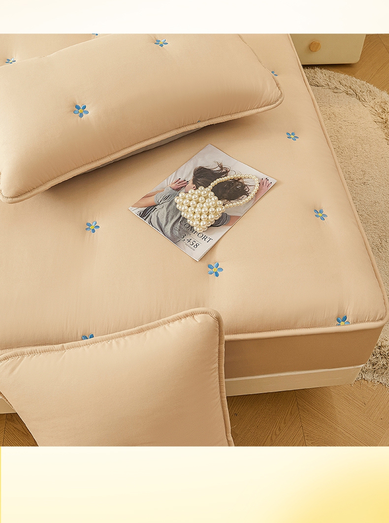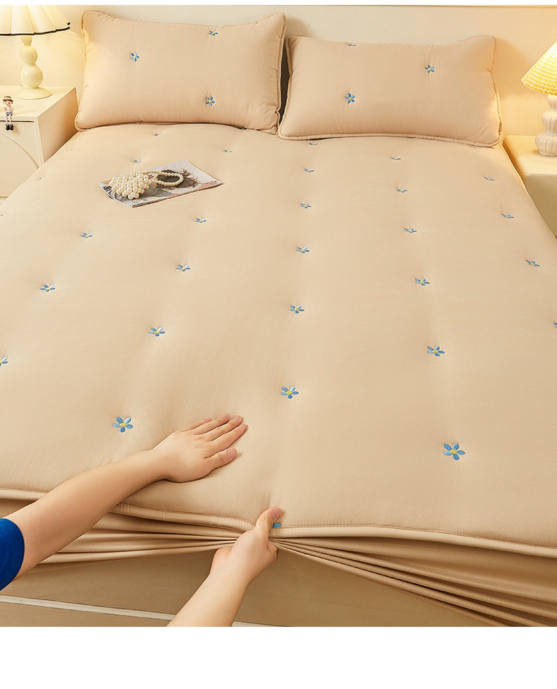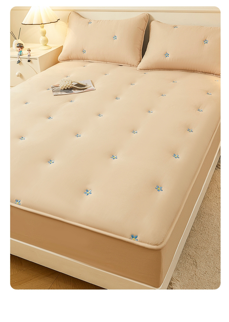 2025新款A类水洗棉大豆刺绣床笠 向阳花-经典驼
