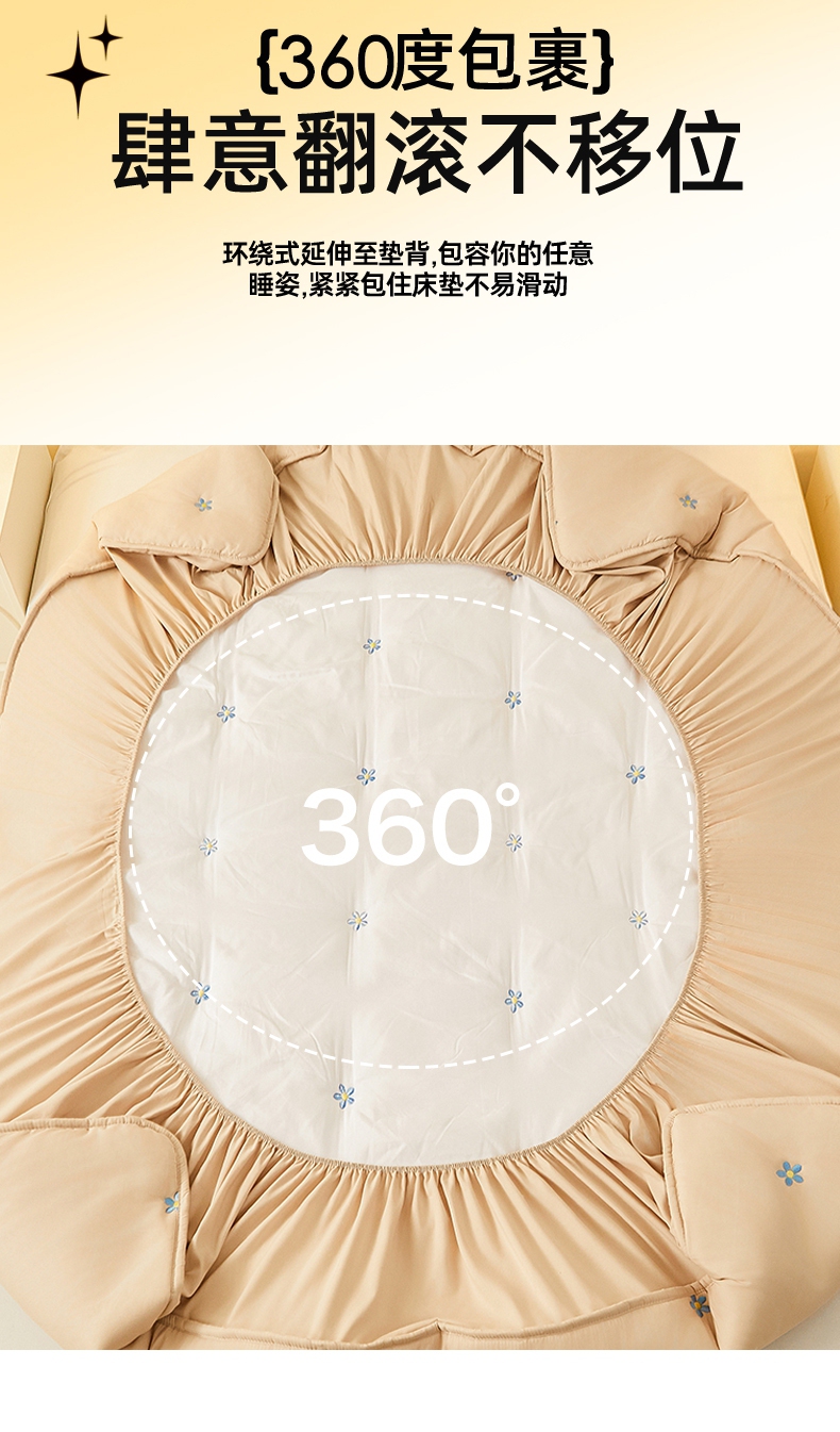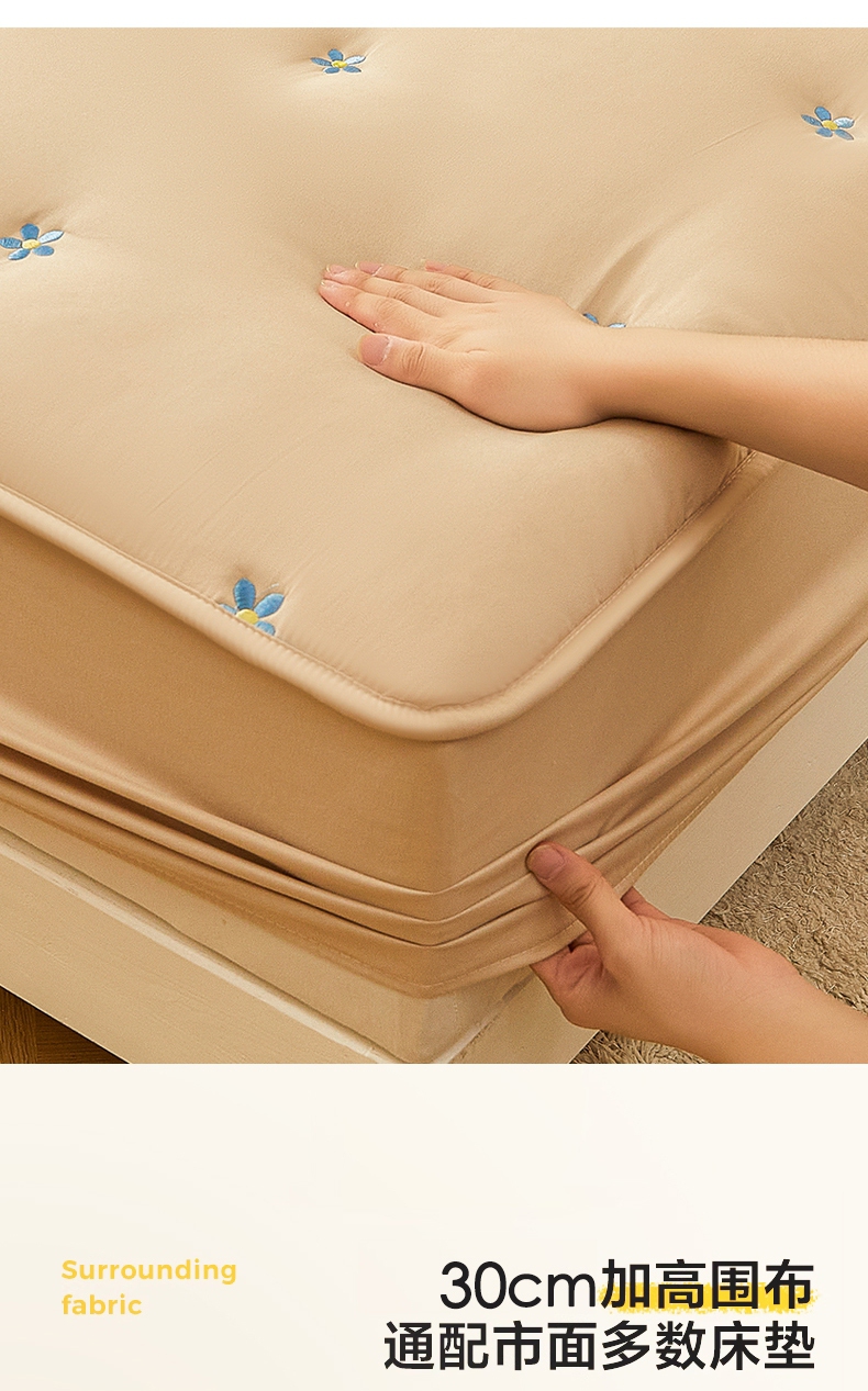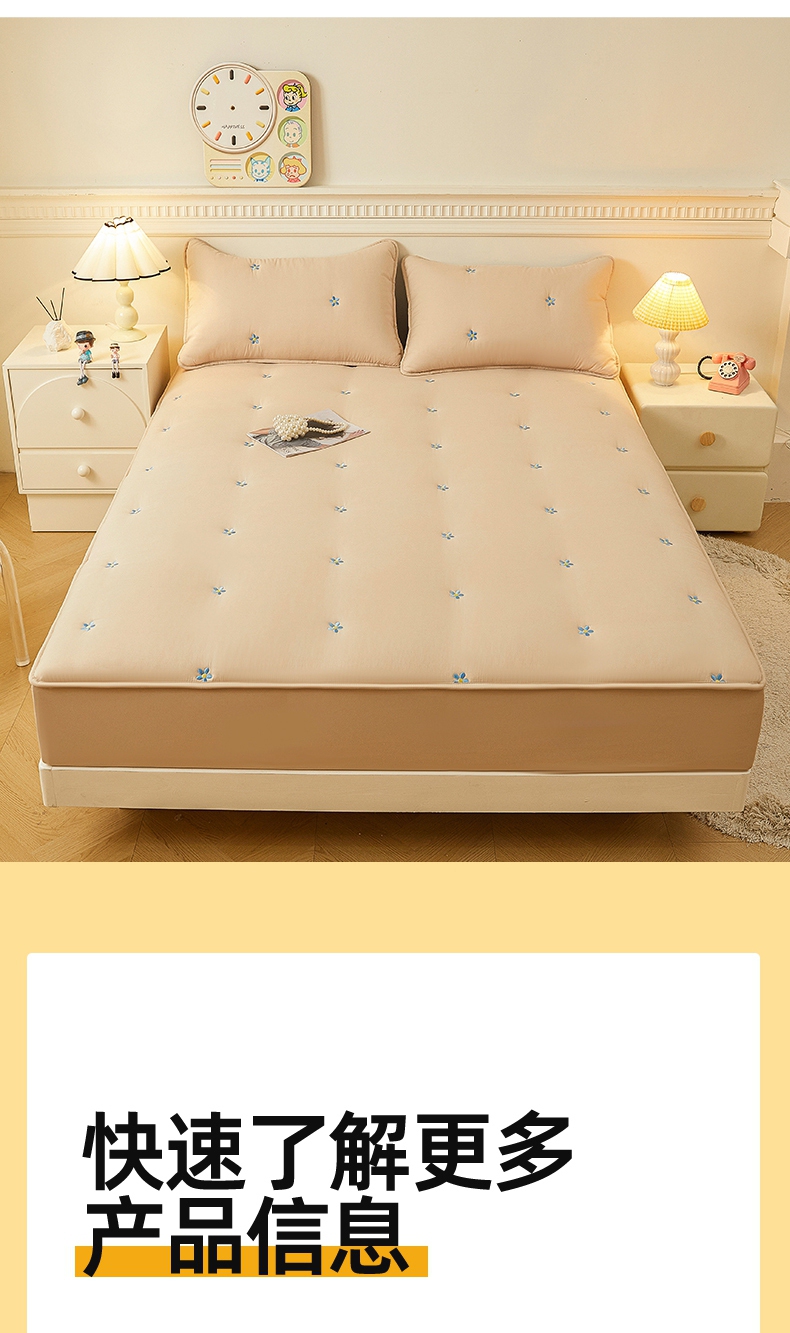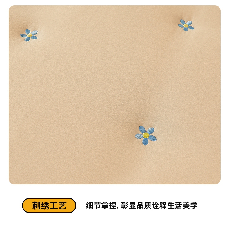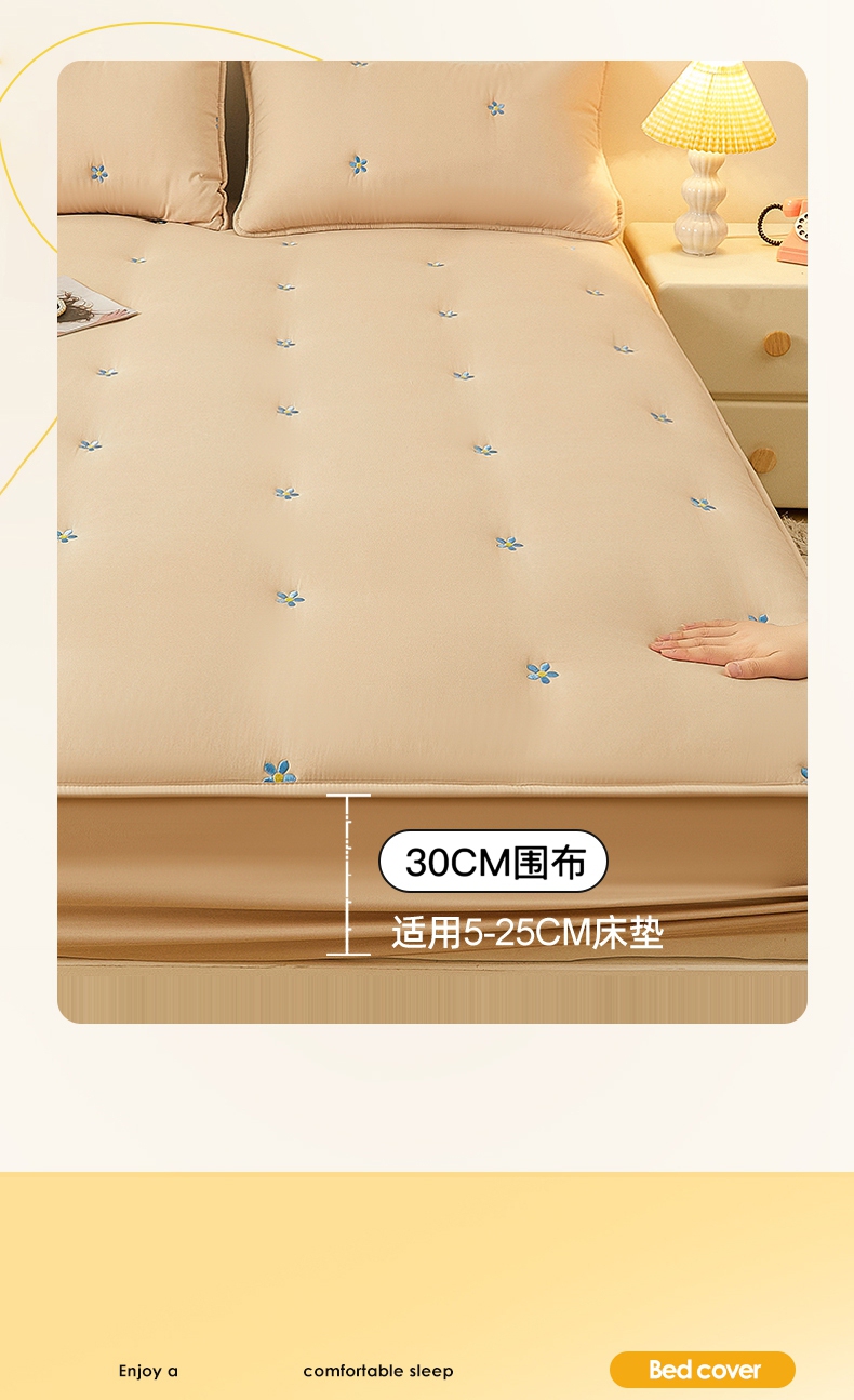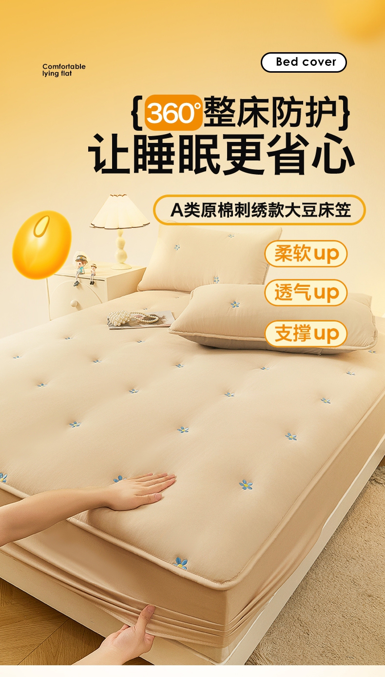 商品名称:2025新款A类水洗棉大豆刺绣床笠 向阳花-经典驼