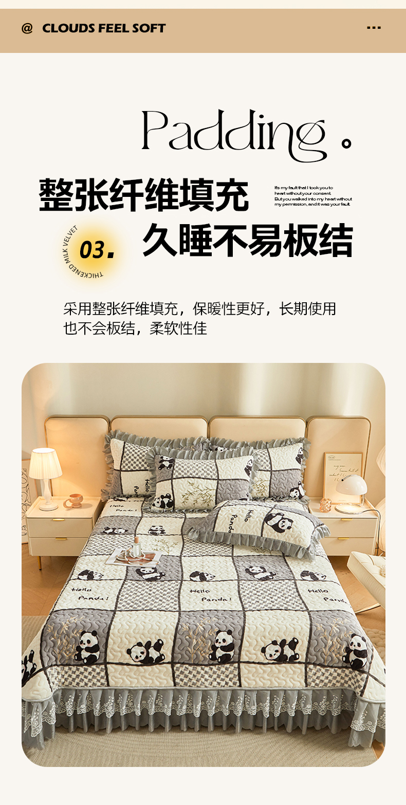 艾裙海 2025新款高克重加厚保暖A类牛奶绒夹棉床盖系列四件套 熊猫皮皮
