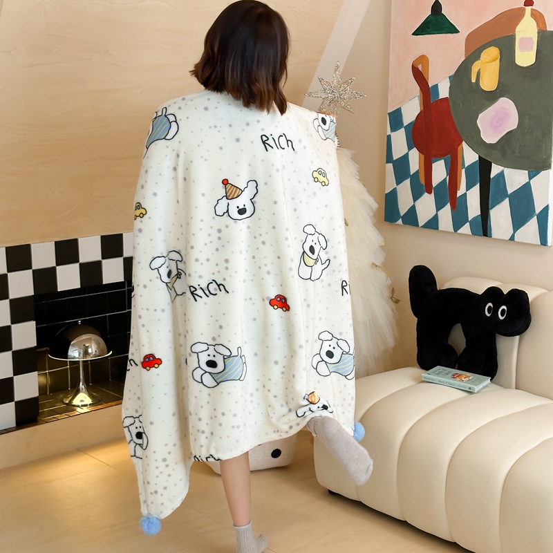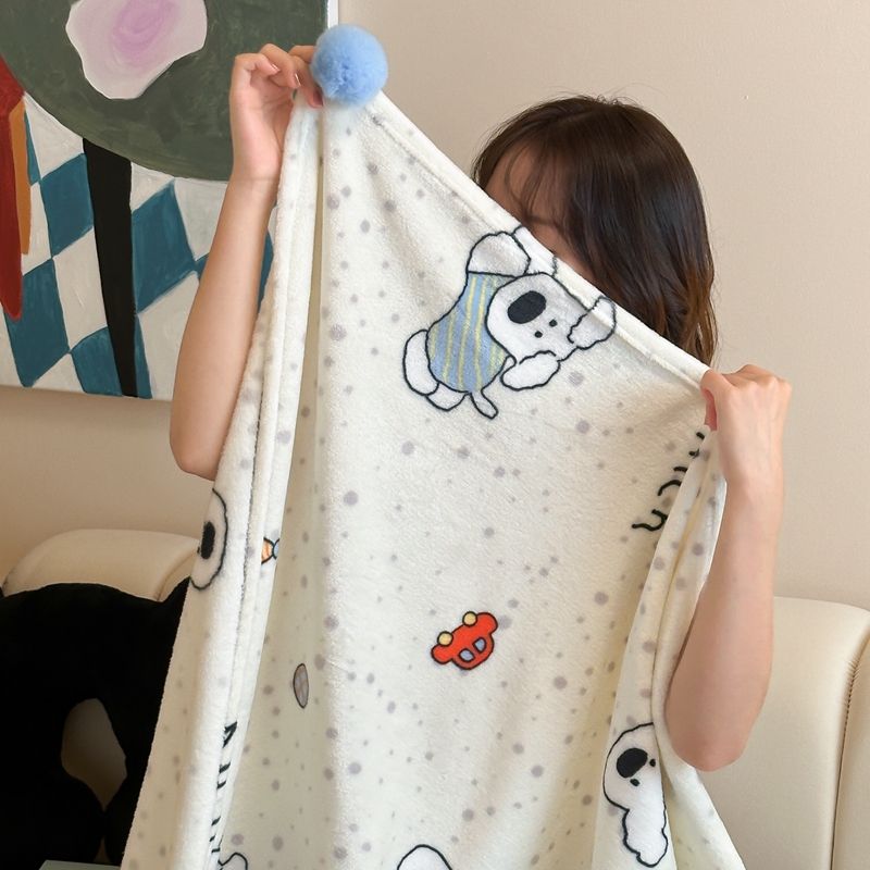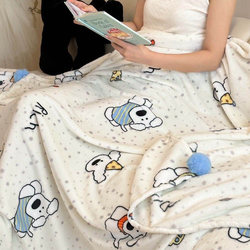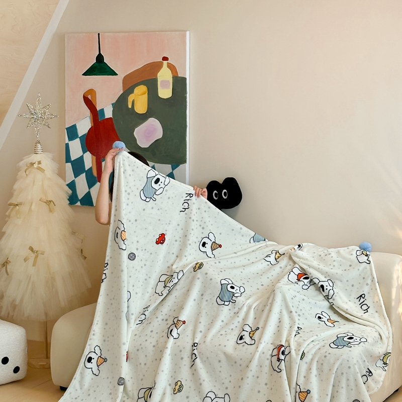 觅糖家纺 2024新款双面法兰绒毛球毛毯系列 暴富狗-米