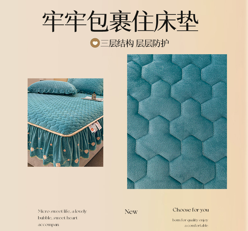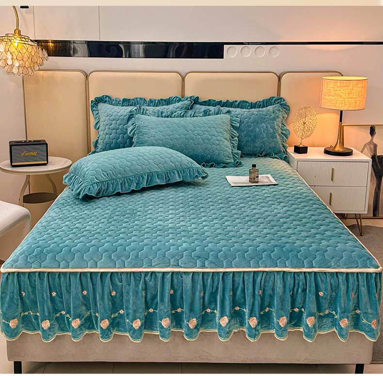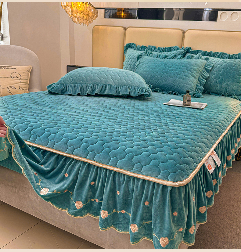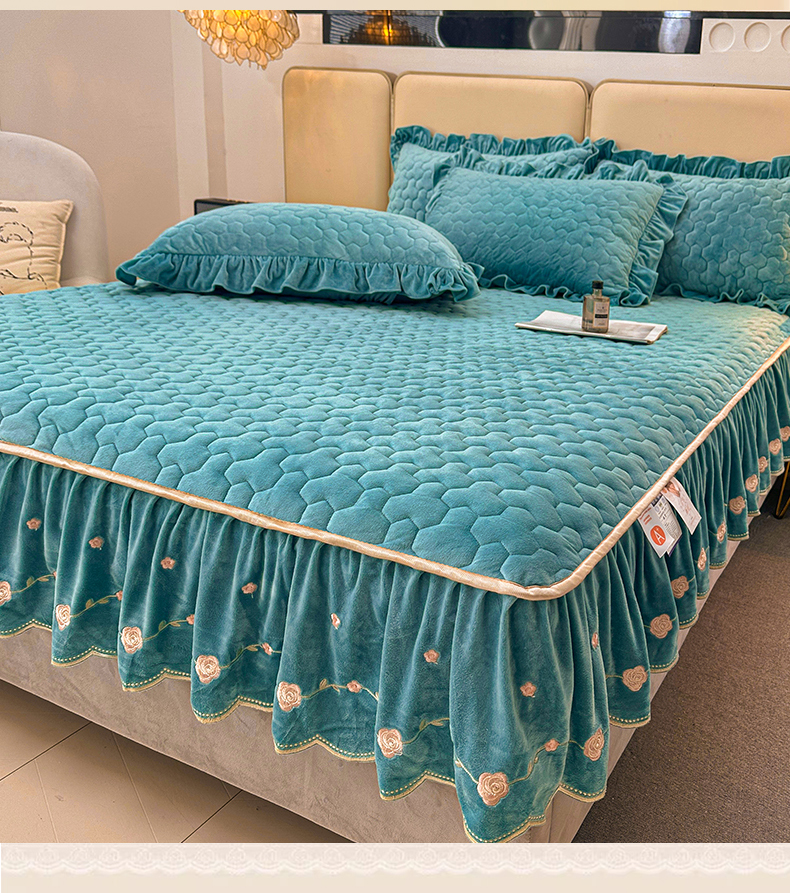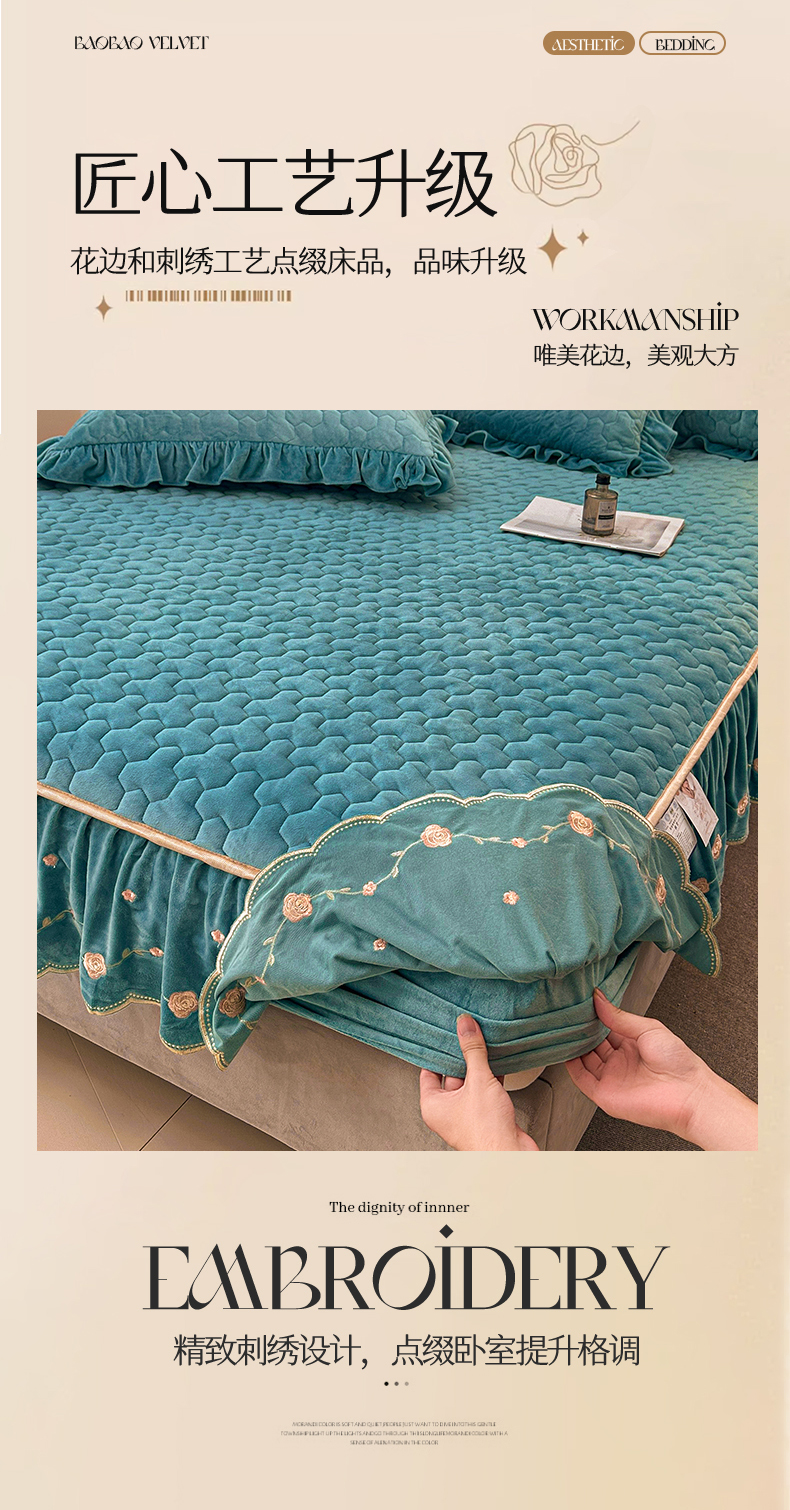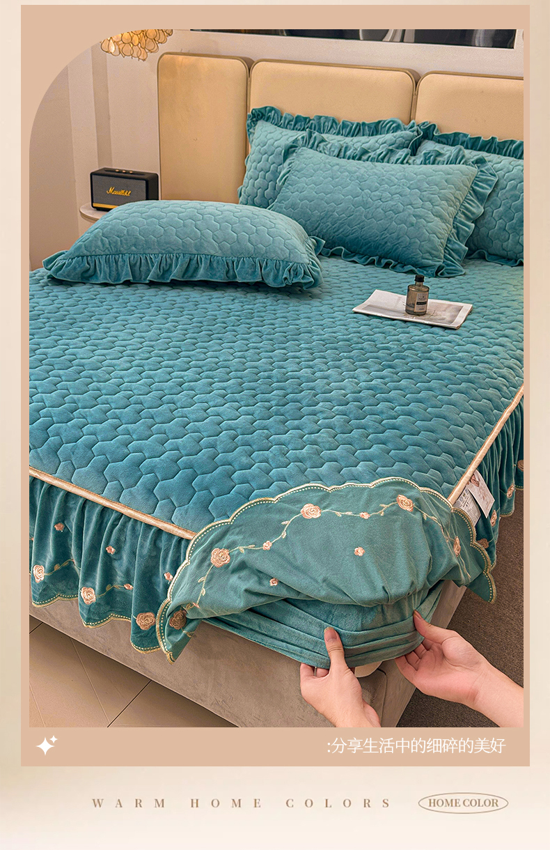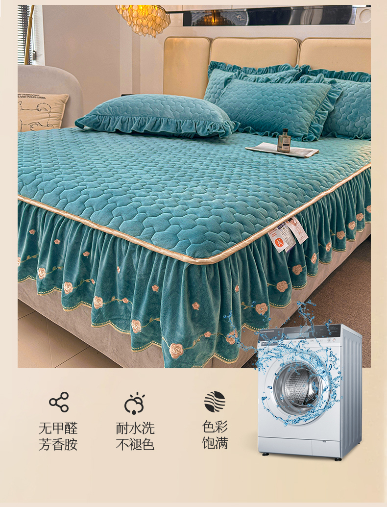 (总)恒爱家纺 2025新款牛奶绒贴布绣夹棉床裙四件套,豆沙红,浪漫紫,天空蓝,温馨粉,象牙白