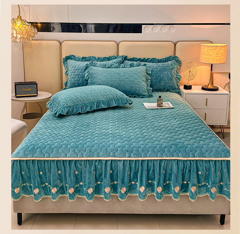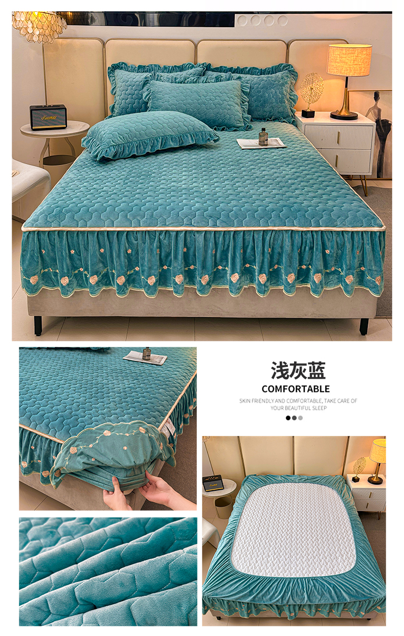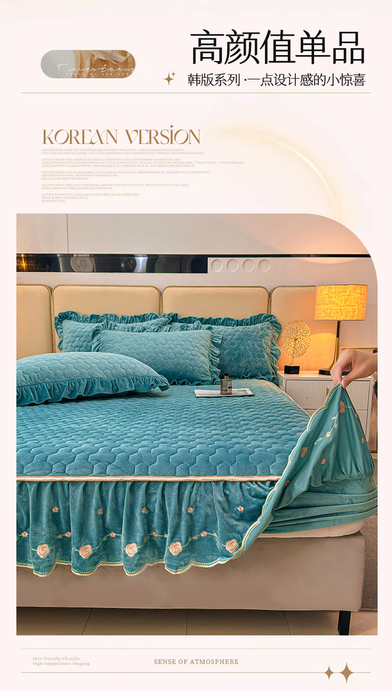 • 91家纺网 家纺一手货源 找家纺 (总)恒爱家纺 2025新款牛奶绒贴布绣夹棉床裙四件套,豆沙红,浪漫紫,天空蓝,温馨粉,象牙白