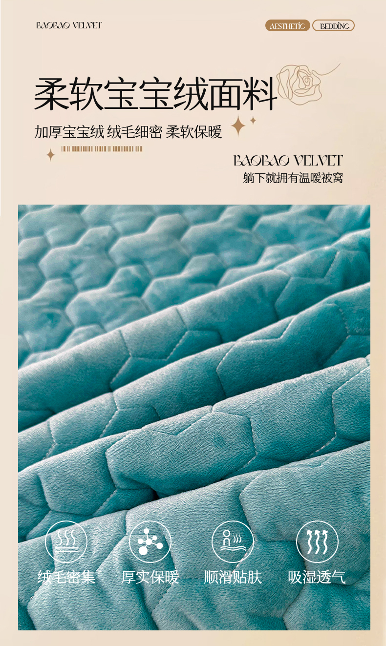 • 91家纺网 家纺一手货源 找家纺 恒爱家纺 2024新款宝宝绒霞姿月韵床笠 浅灰蓝