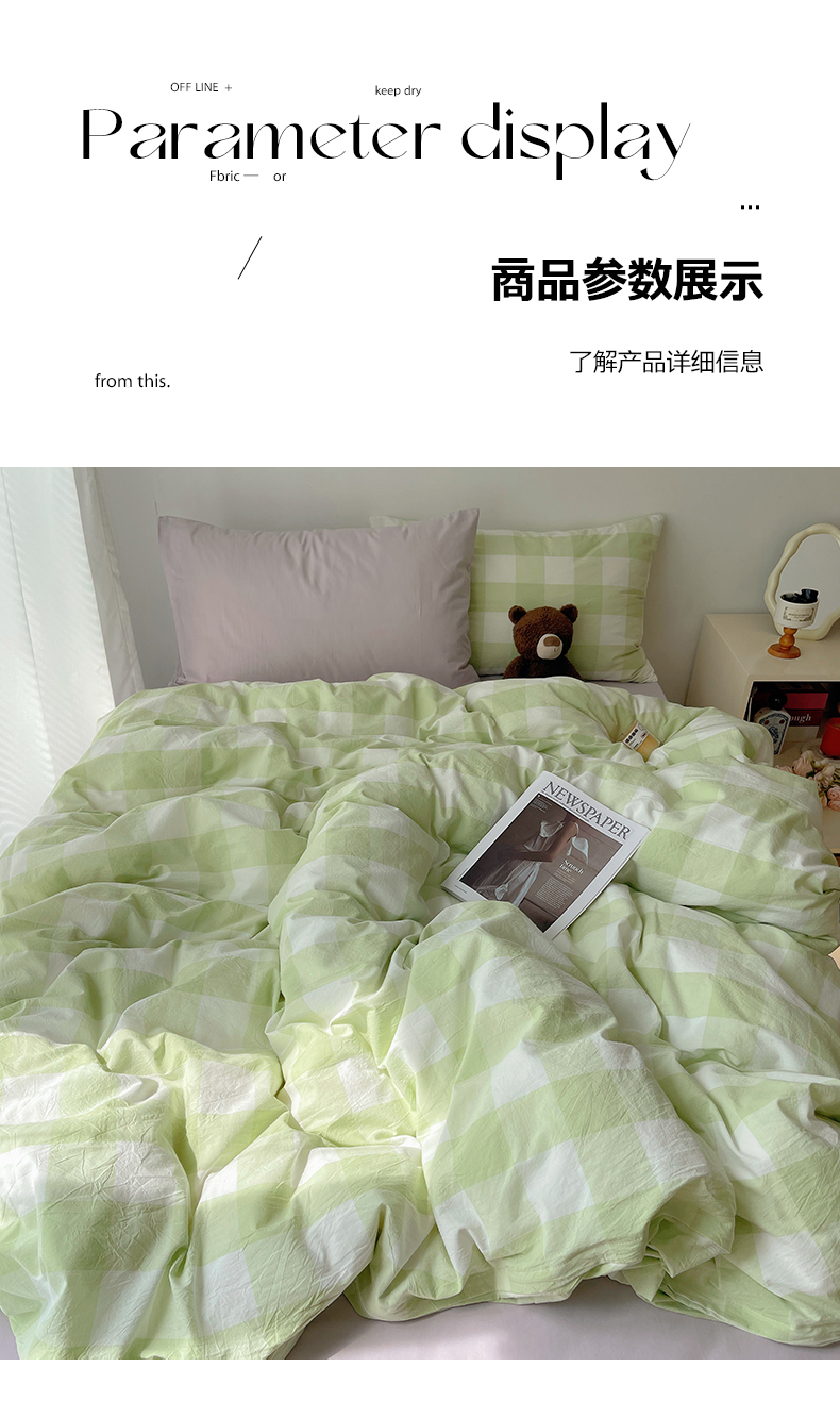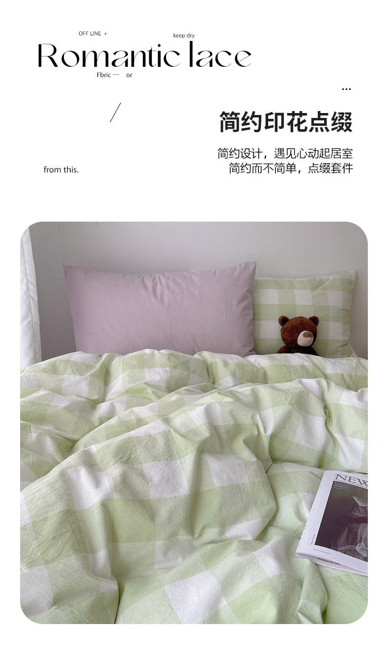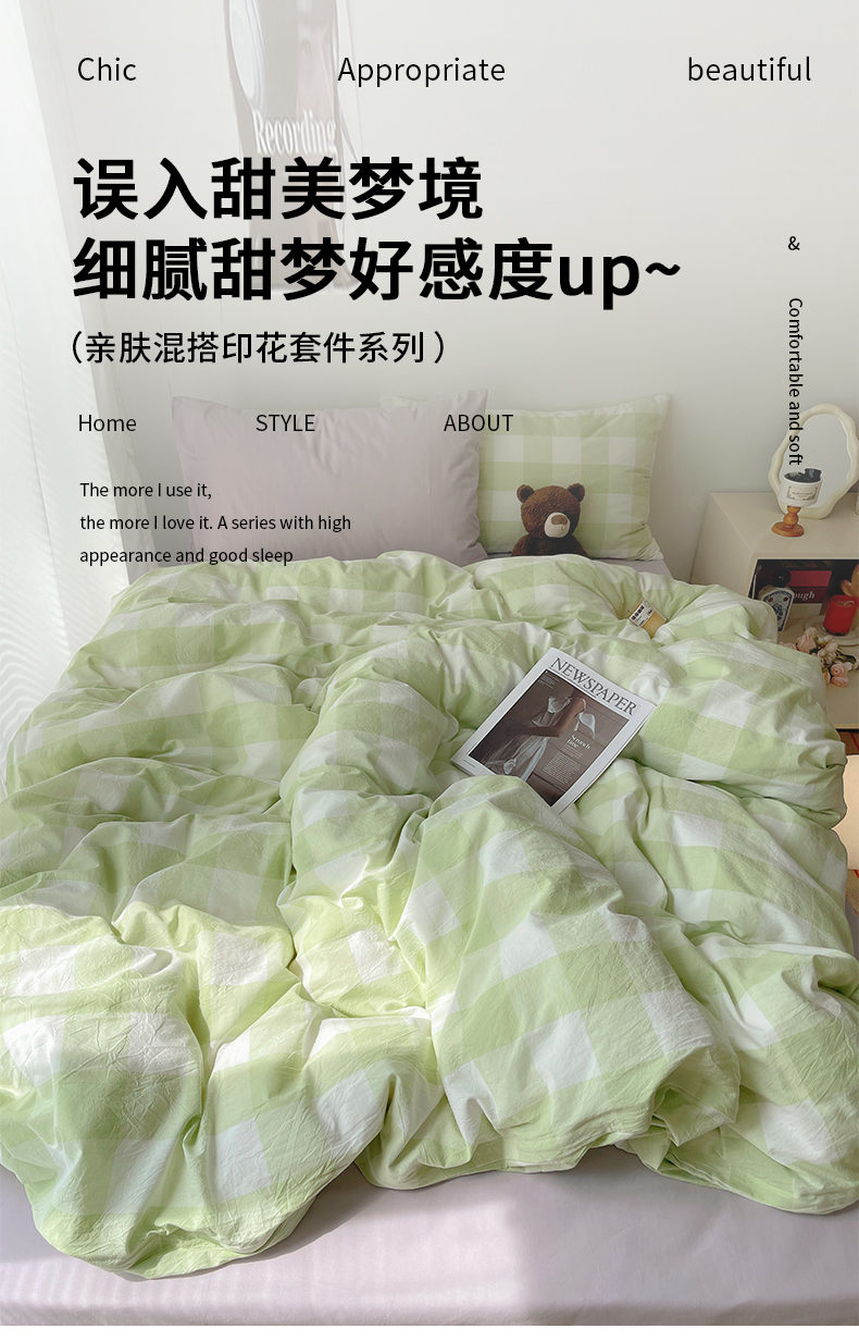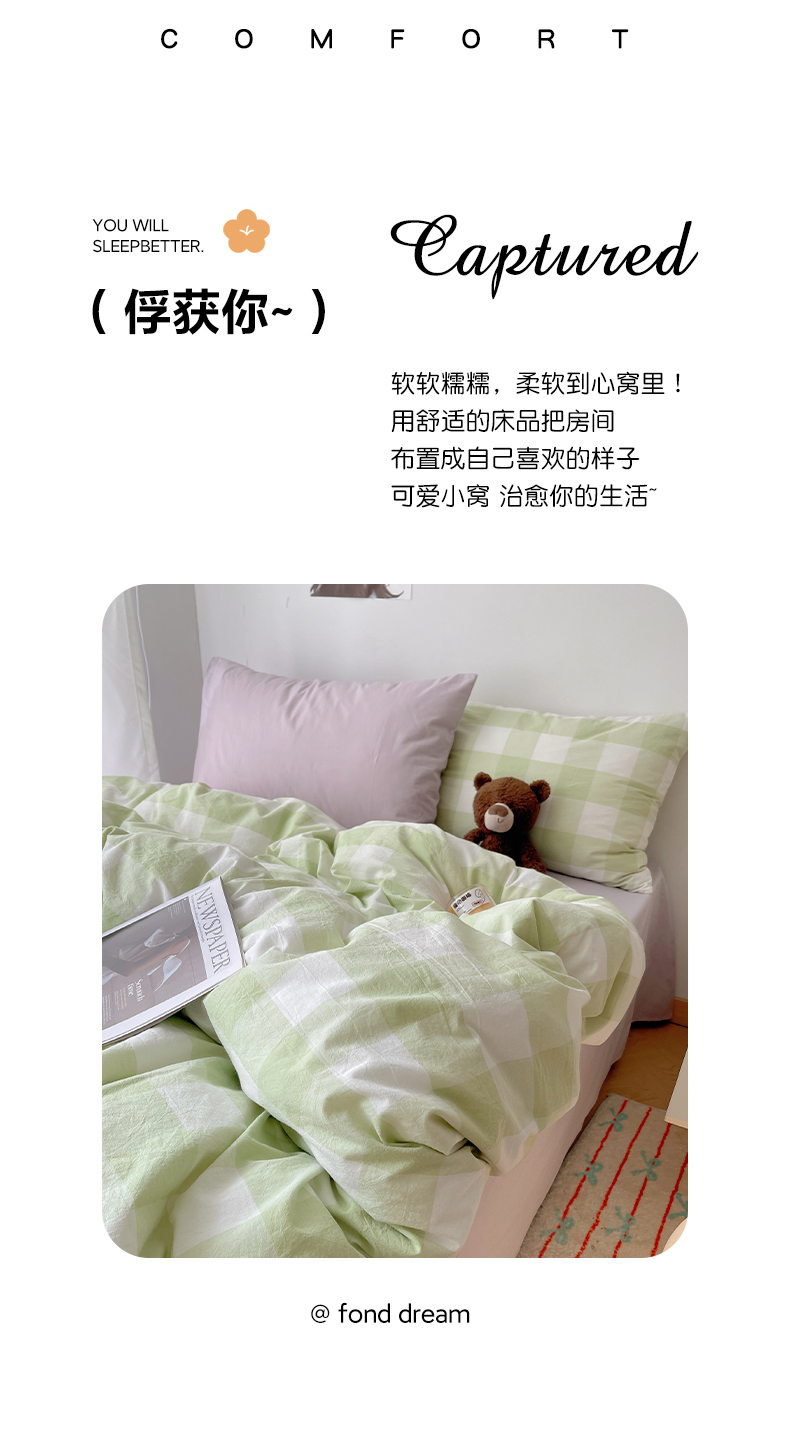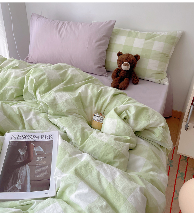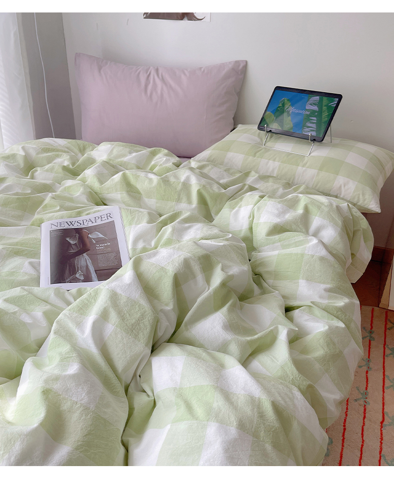 当前位置: 91家纺网 > 商品网购 > 床品套件 > 四件套 > 其它四件套 > 繁花家居 2024新款亲肤混搭印花四件套系列(提供买家秀) 混搭-蜜瓜绿方格