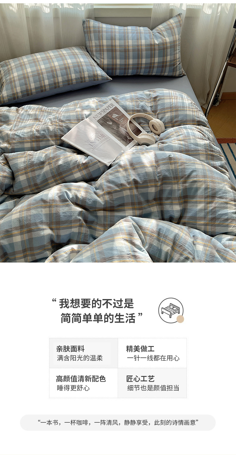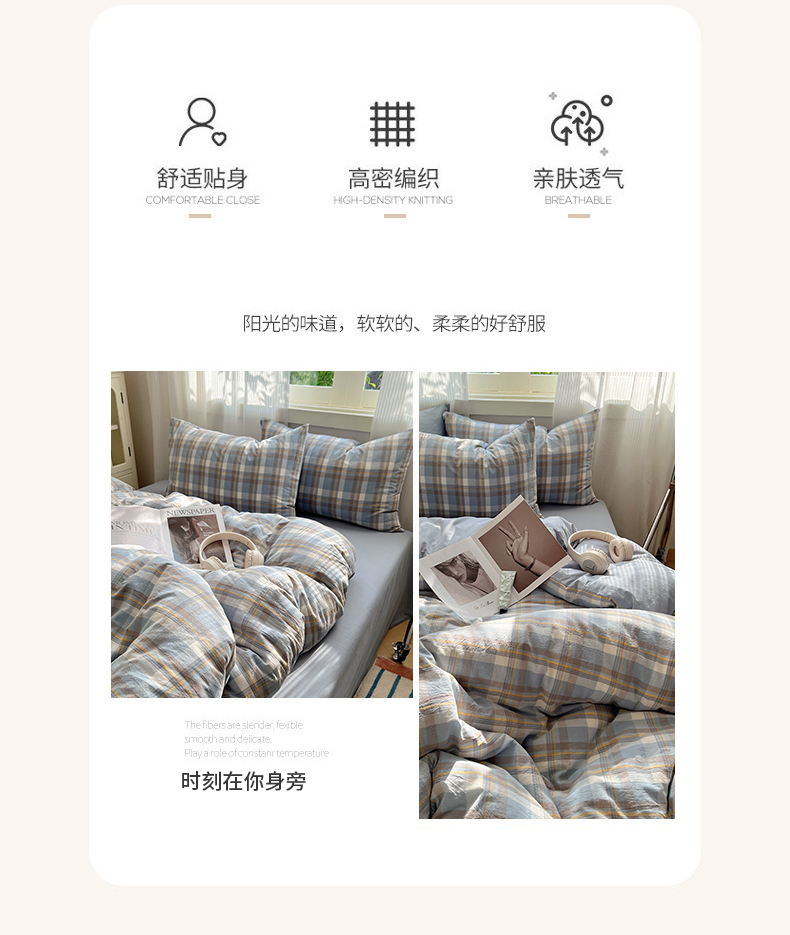 当前位置: 91家纺网 > 商品网购 > 床品套件 > 四件套 > 水洗棉四件套 > 繁花家居 2024新款简约格子水洗棉四件套系列 暮落灰