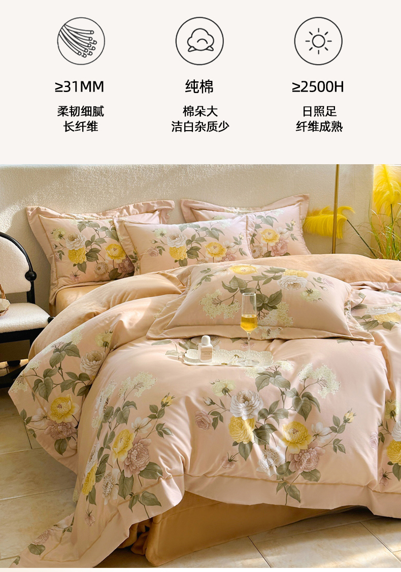 (总)7V 2025新款轻奢大宽边100%纯棉四件套133*76全棉喷气宽幅长绒棉被套床单床笠套件,橙光,春景-粉,花之茵,浣溪花-米,眷恋,可蒂狗-灰,乐悠闲,麦风,曼妙,玫瑰集-粉,蜜朵-米,沐遇玫瑰,星星兔,醒春集-灰,雅绘,侏罗纪