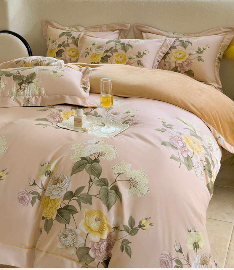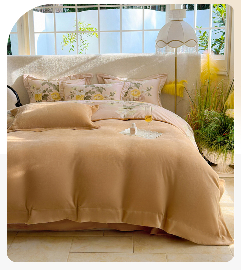 床上用品 > 被套 > 7V 2024新款单件被套A纯棉B牛奶绒轻奢大宽边一字绣A类133*76全棉喷气宽幅长绒棉高克重全工艺牛奶绒 花绘-粉