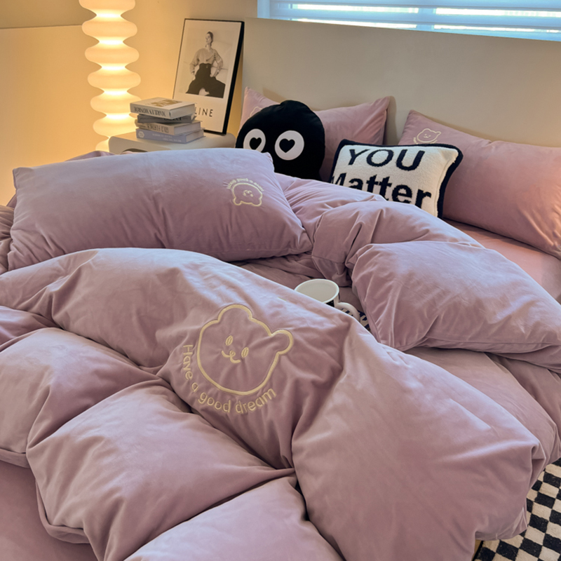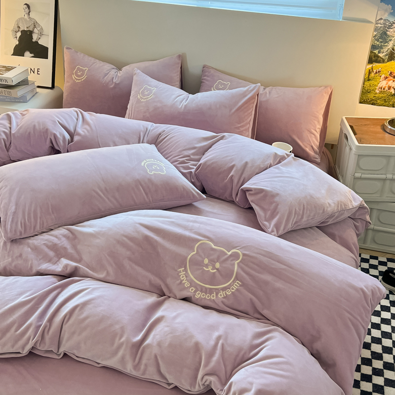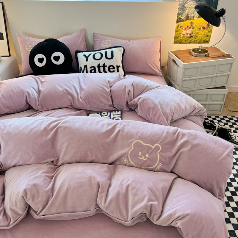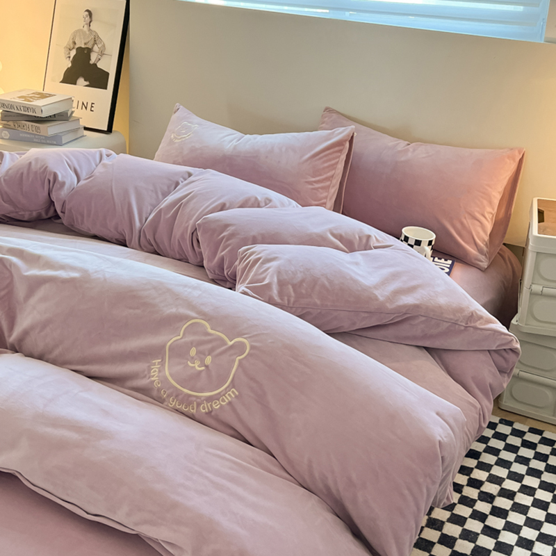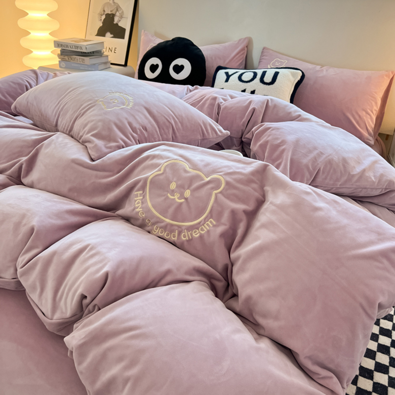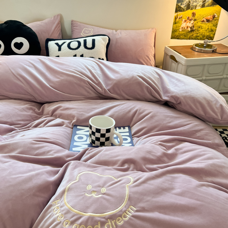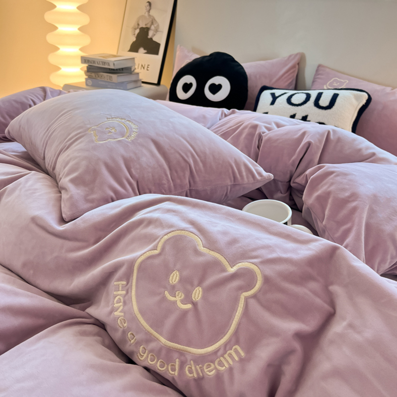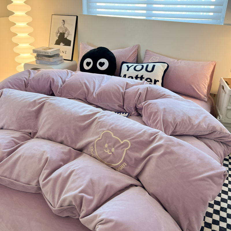 当前位置: 91家纺网 > 商品网购 > 床品套件 > 四件套 > 牛奶绒四件套 > yyds网供 【场景一】短绒小熊刺绣水晶绒四件套轻奢秋冬牛奶绒简约-小熊系列 小熊-浅紫