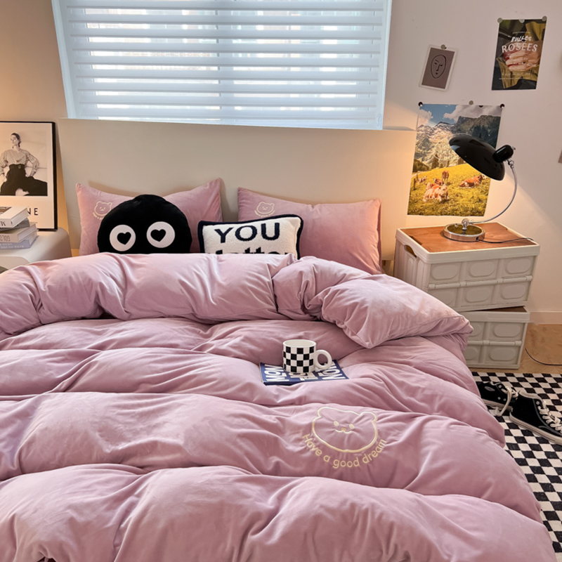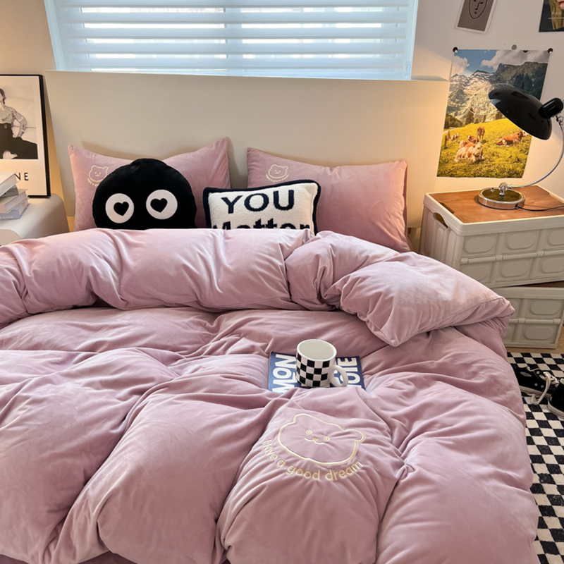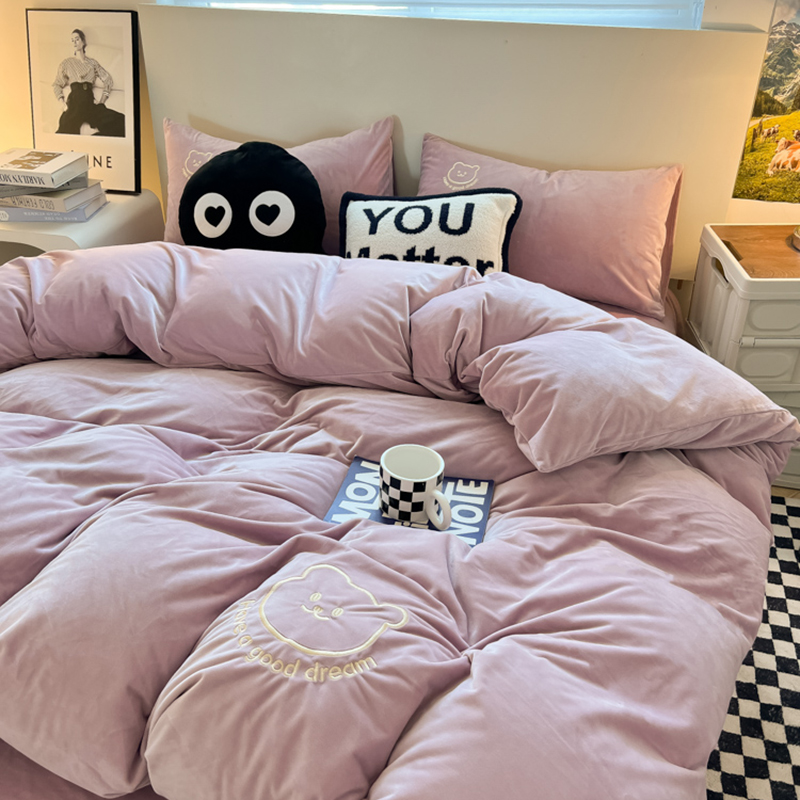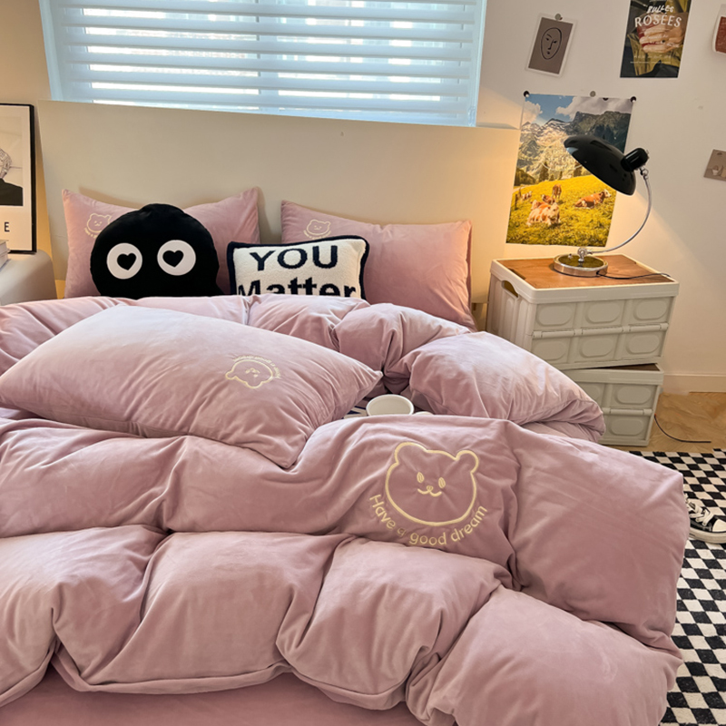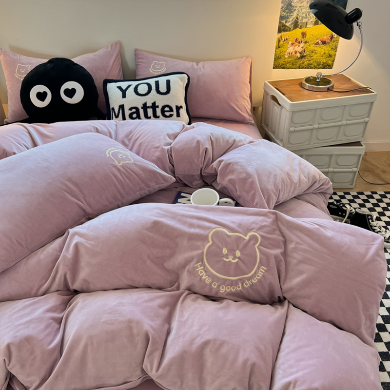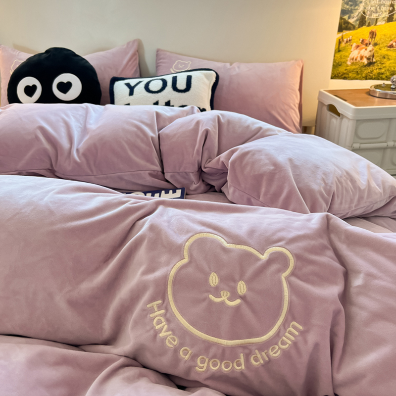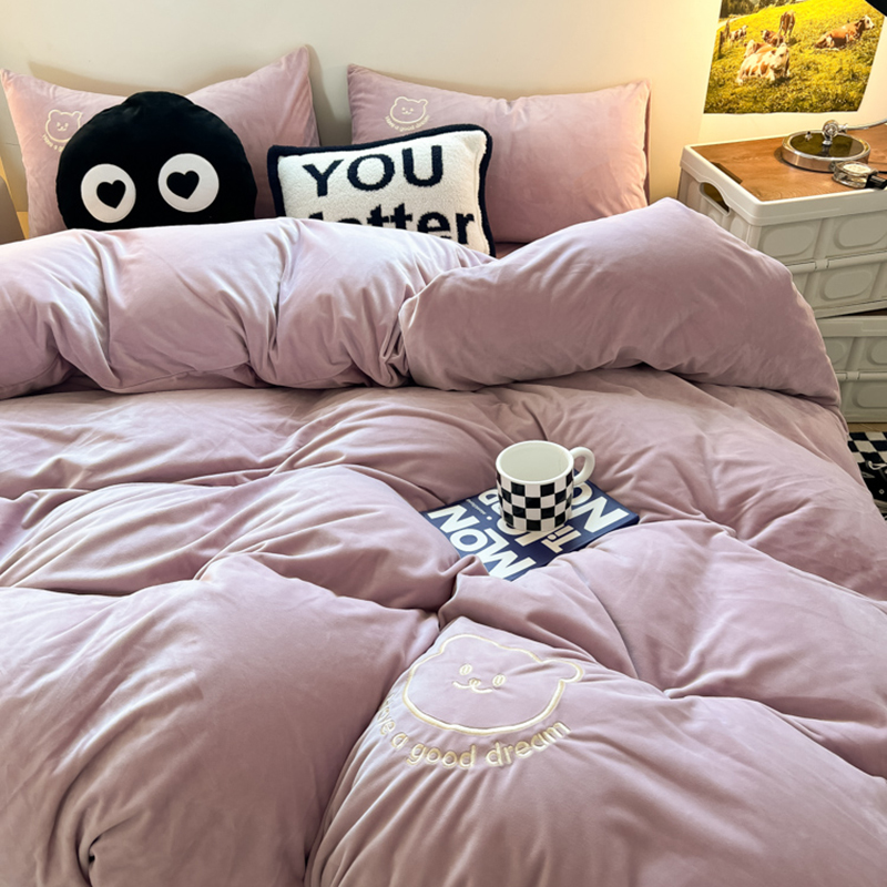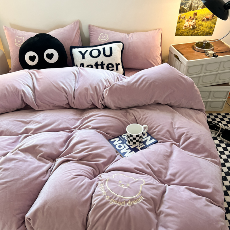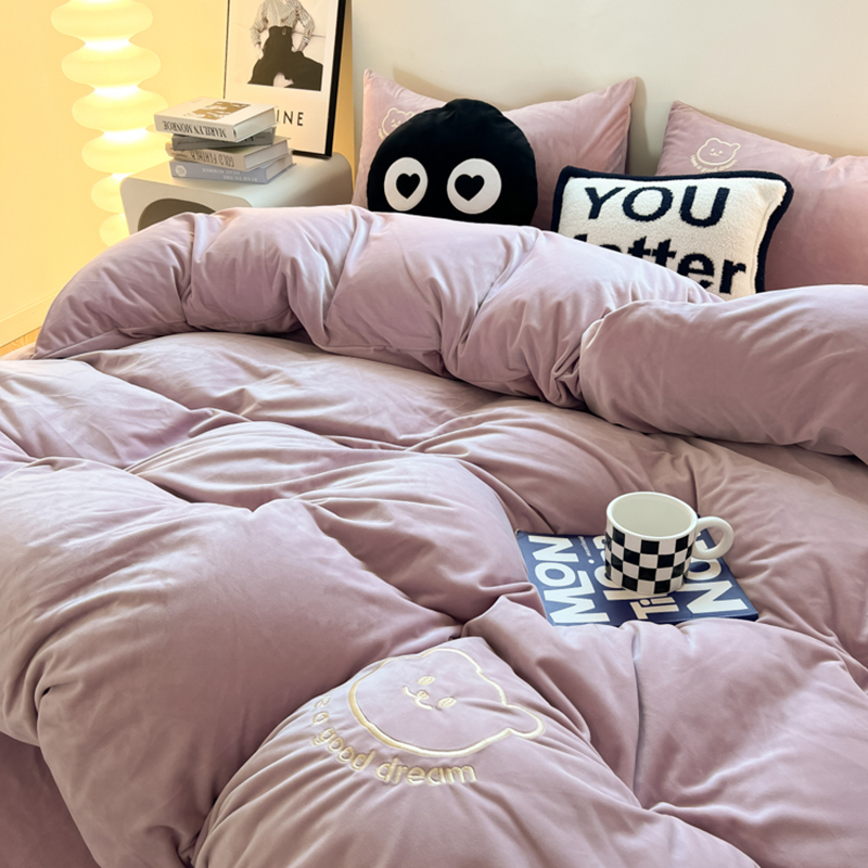 当前位置: 91家纺网 > 商品网购 > 床品套件 > 四件套 > 牛奶绒四件套 > yyds网供 【场景一】短绒小熊刺绣水晶绒四件套轻奢秋冬牛奶绒简约-小熊系列 小熊-浅紫
