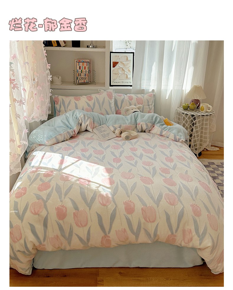 当前位置: 91家纺网 > 商品网购 > 床品套件 > 四件套 > 牛奶绒四件套 > 繁花家居 2024新款冬季高克重牛奶绒四件套-风格二 布丁波波
