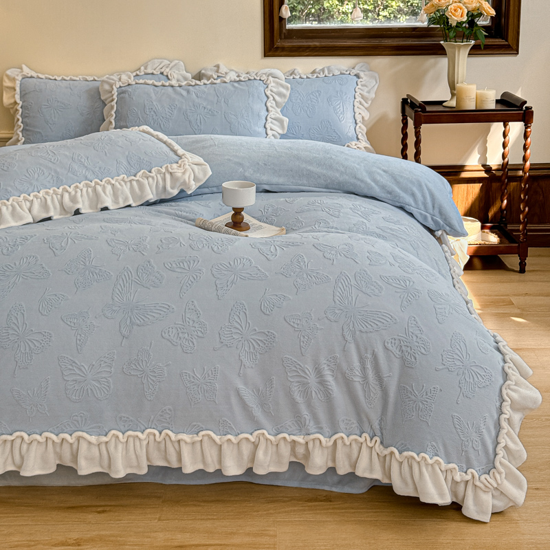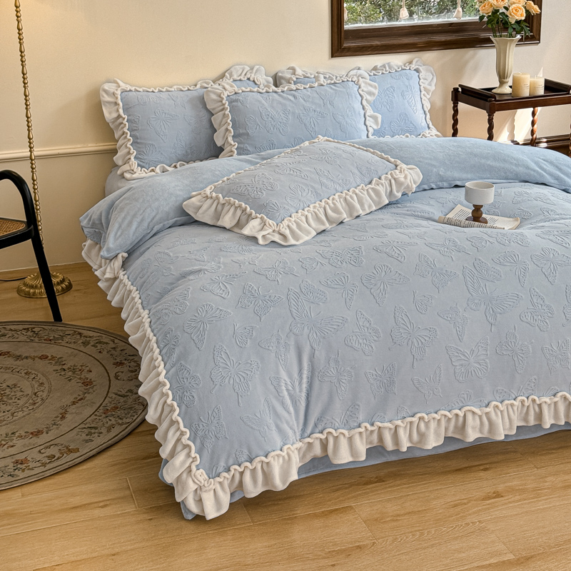 当前位置: 91家纺网 > 商品网购 > 床品套件 > 四件套 > 牛奶绒四件套 > 小主驾到 2024新款雕花绒牛奶绒花边款轻奢法式蝴蝶烂花公主风四件套 梦笙蝶兰
