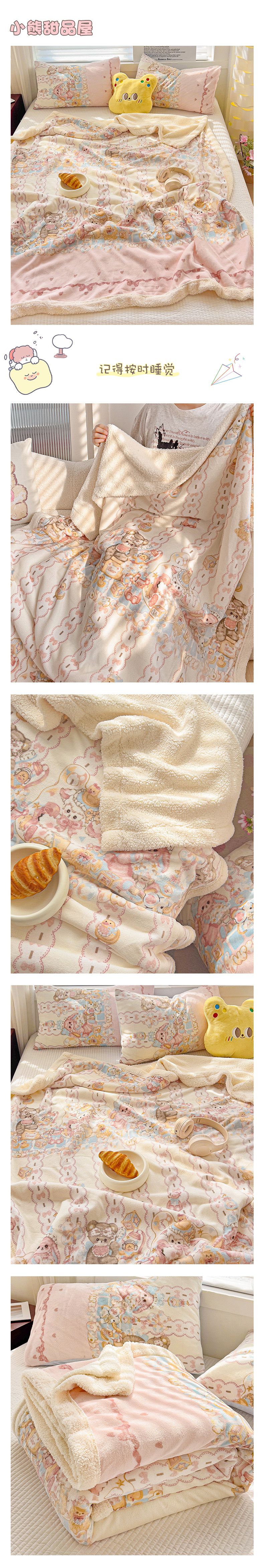 繁花家居 2024新款牛奶绒洛丽塔系列毛毯 花花狗和斑斑兔