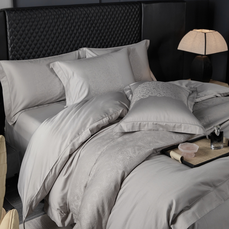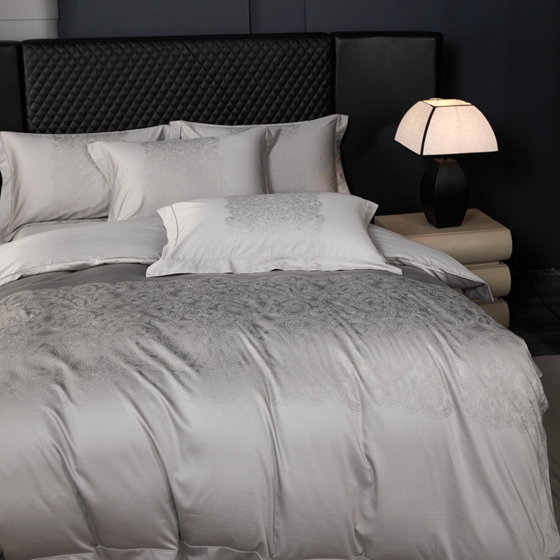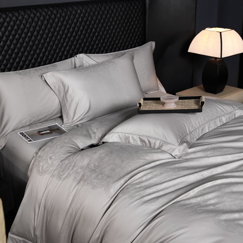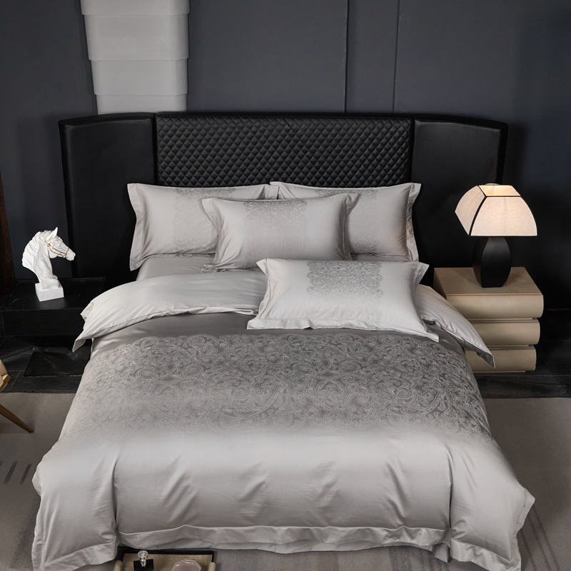 商品名称:淳绵家居 2024新款50*50S双股长绒棉大版定位提花四件套 贝妮特-时尚灰