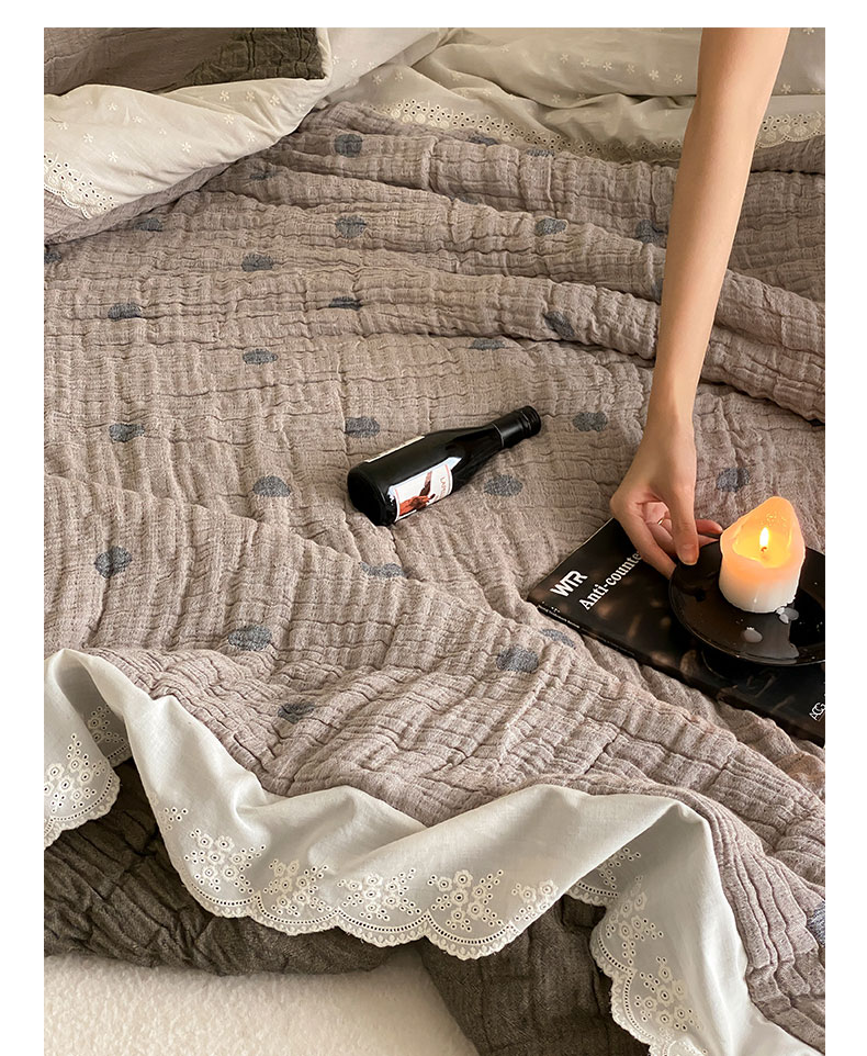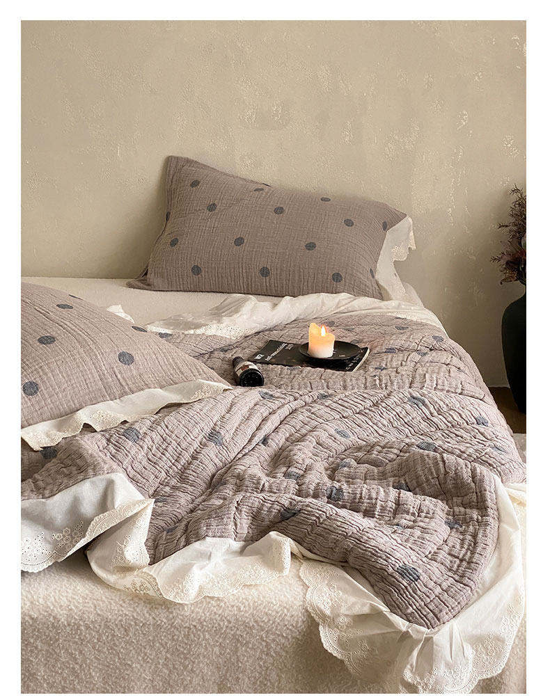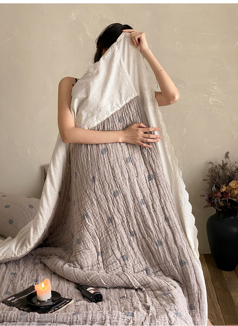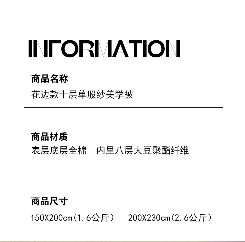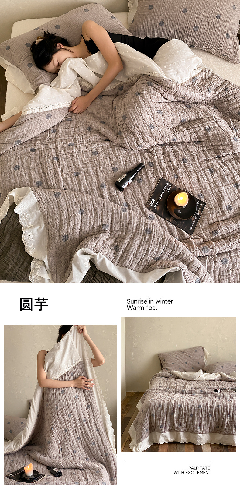 商品名称:麻依 2024新款十层单股纱美学被花边款纱布秋冬被子 圆芋