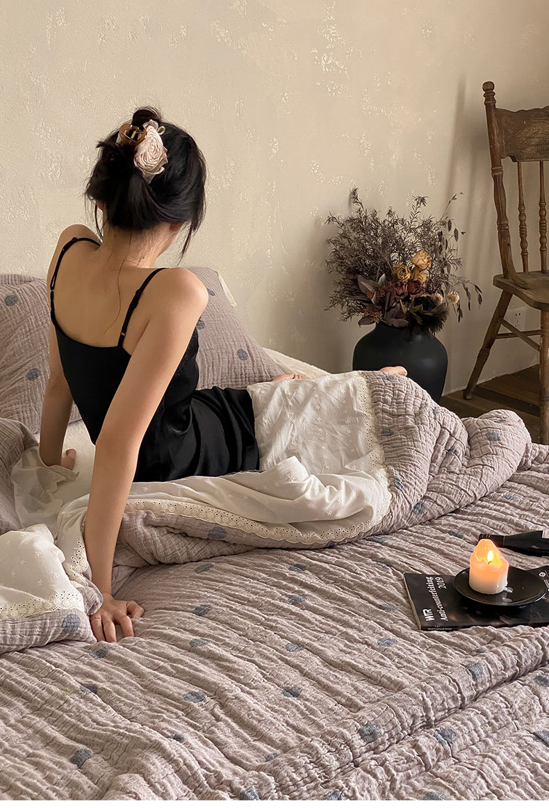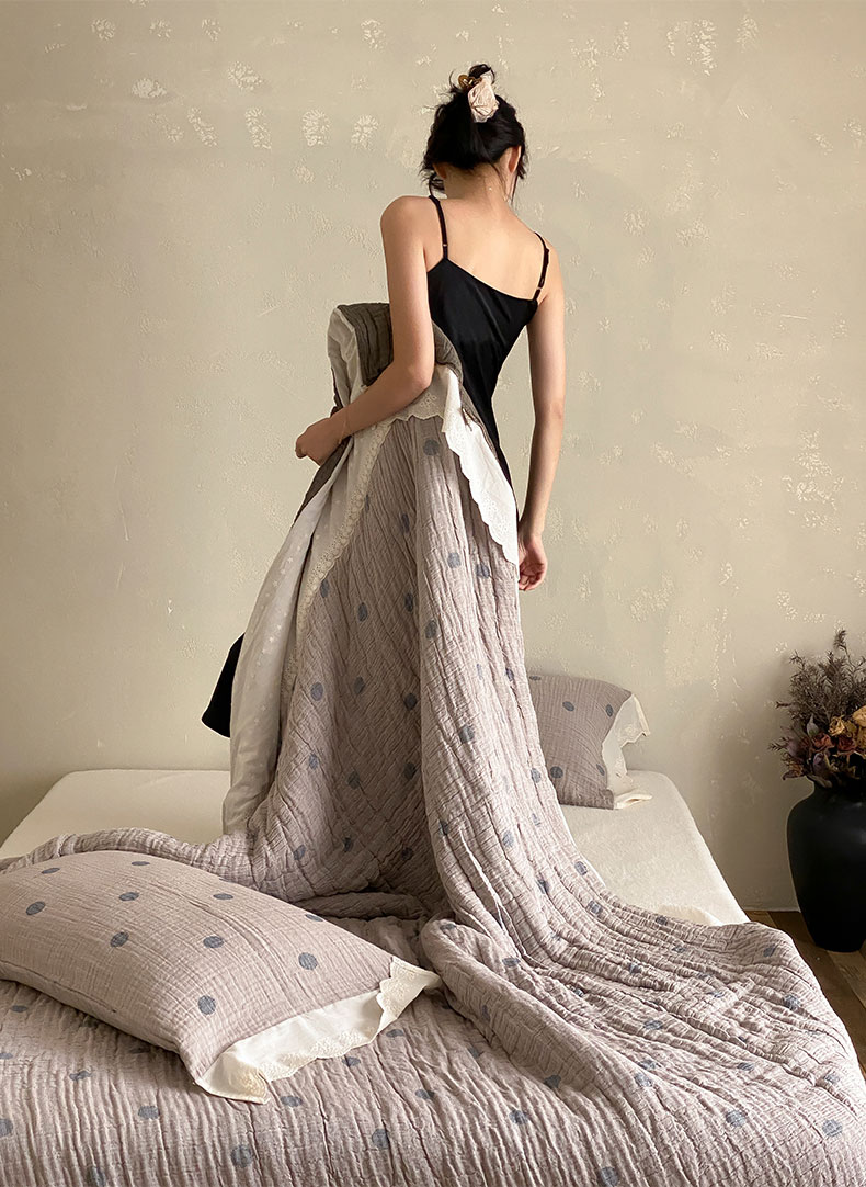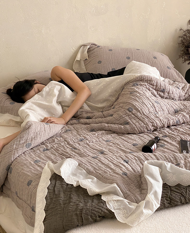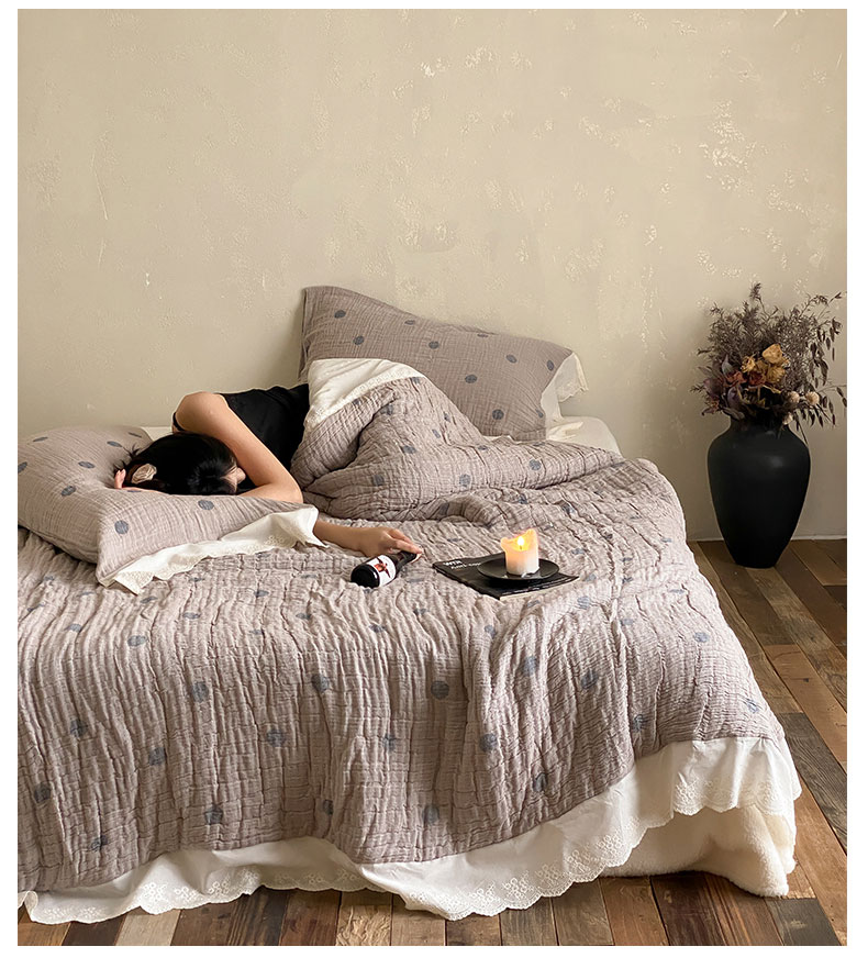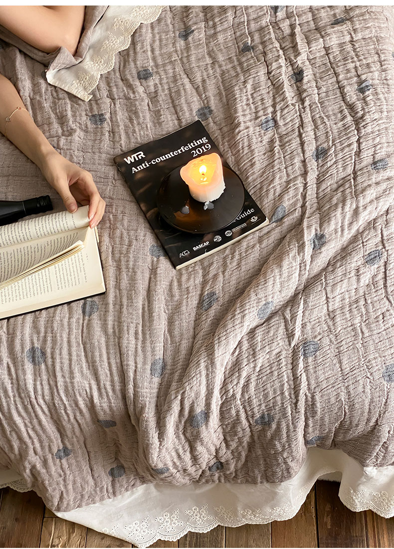 商品名称:麻依 2024新款十层单股纱美学被花边款纱布秋冬被子 圆芋